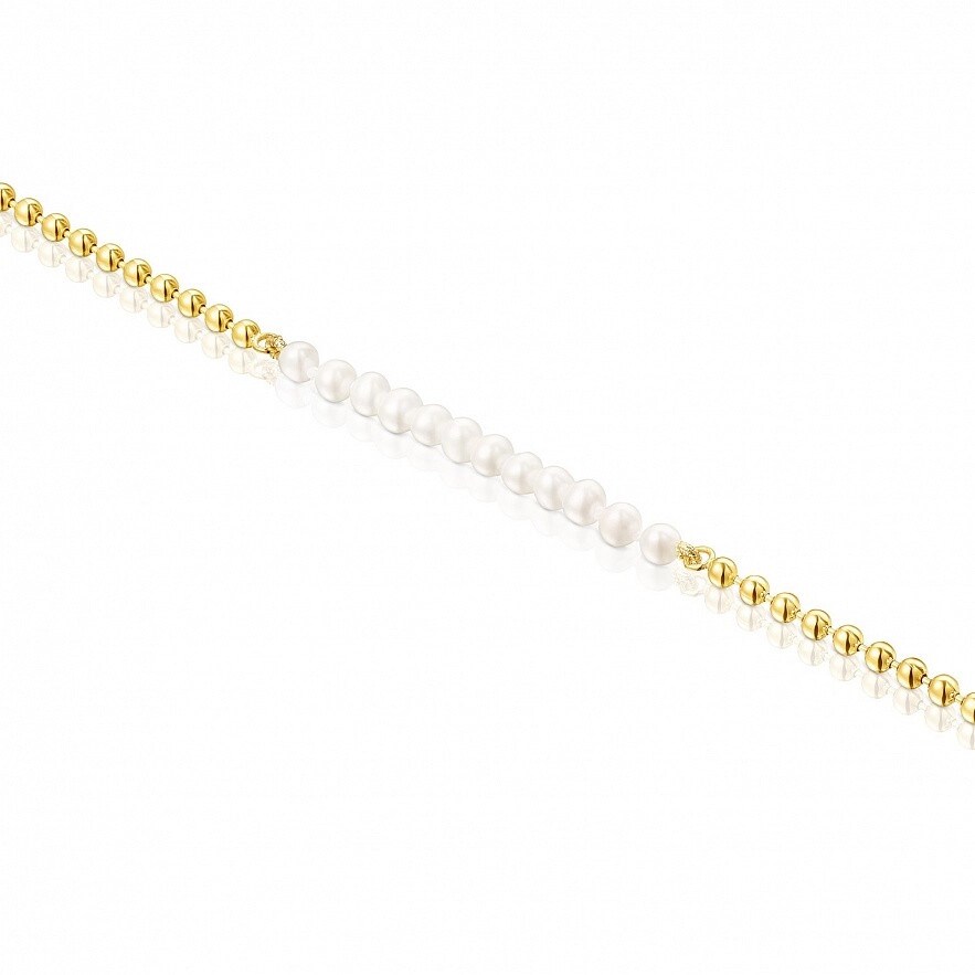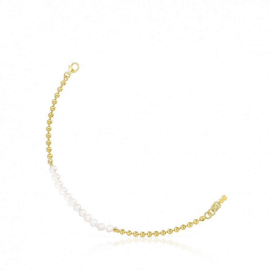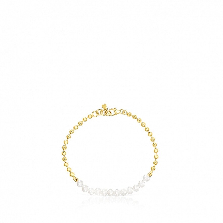 Браслет TOUS Gloss из серебра 925 пробы с покрытием Vermeil с цепью шариками диаметром 3 мм и культивированным пресноводным жемчугом диаметром 5 см. Длина браслета: 17,5 см.Vermeil : серебро с покрытием золота 18 карат.