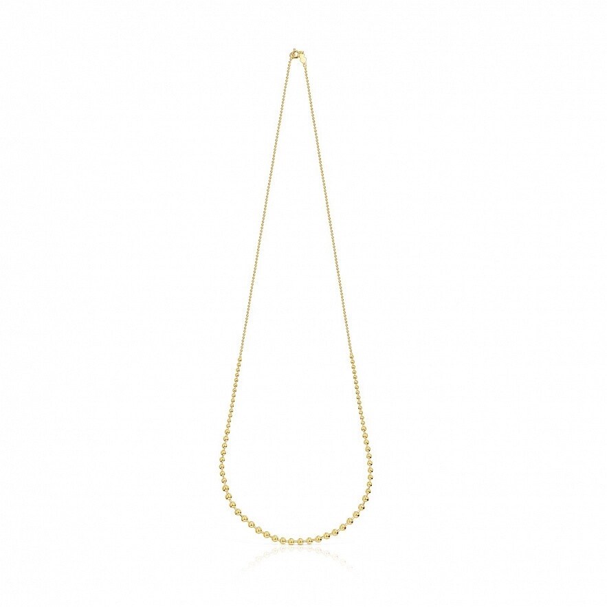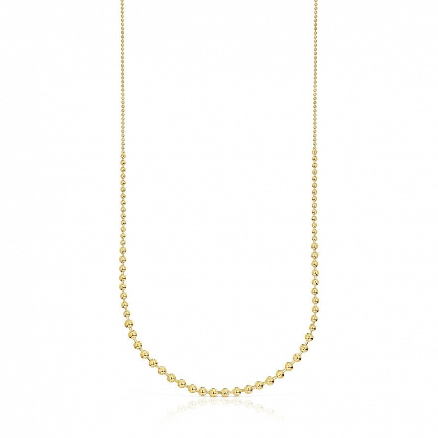 Ожерелье TOUS Gloss из серебра 925 пробы с покрытием Vermeil с цепью шариками; 23 см цепи - шарики диаметром 1,8 мм, 5 см цепи - шарики диаметром 3 мм, 14,5 см цепи - шарики диаметром 5 мм и 4 см цепи - шарики диаметром 4 мм. Длина ожерелья: 82 см. Vermeil : серебро с покрытием золота 18 карат.