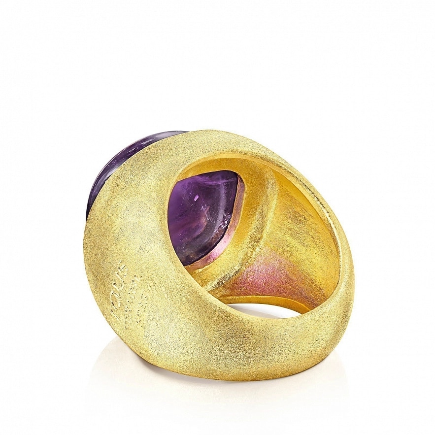 Кольцо TOUS Nattfall из серебра 925 пробы с покрытием Vermeil с аметистом. Размер кольца: 20 мм. [Помните, что природные драгоценные камни могут отличаться по цвету]. Vermeil : серебро с золотым покрытием 18 карат.