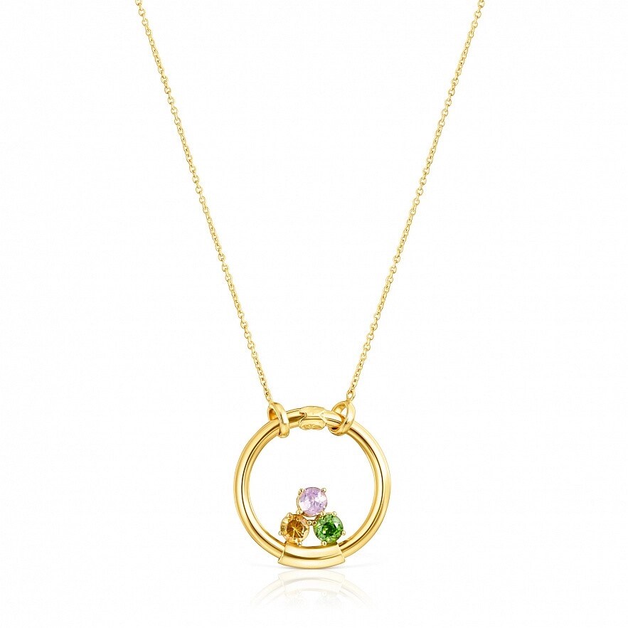 Подвеска TOUS Hold из серебра 925 пробы с покрытием Vermeil с граненым круглым аметистом, цитрином и хромовым диопсидом размером 5 мм. Размер: 28 мм. Сделайте набор уникальным, добавив другие украшения Hold. Подвеска не включает в себя цепь. Vermeil : серебро с покрытием золота 18 карат.