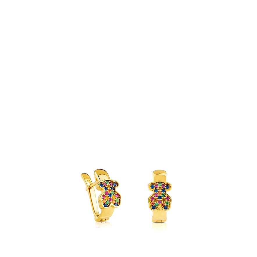 Серьги TOUS Gen из серебра 925 пробы с покрытием Vermeil , голубой синтетической шпинелью, зелеными, оранжевыми и желтыми круглыми ограненными цирконами и розовым синтетическим сапфиром. Общий вес: 0,297 карата.