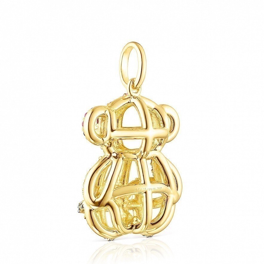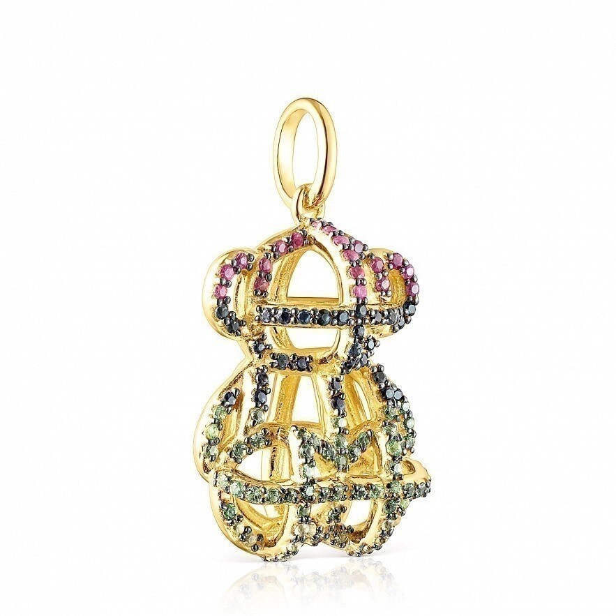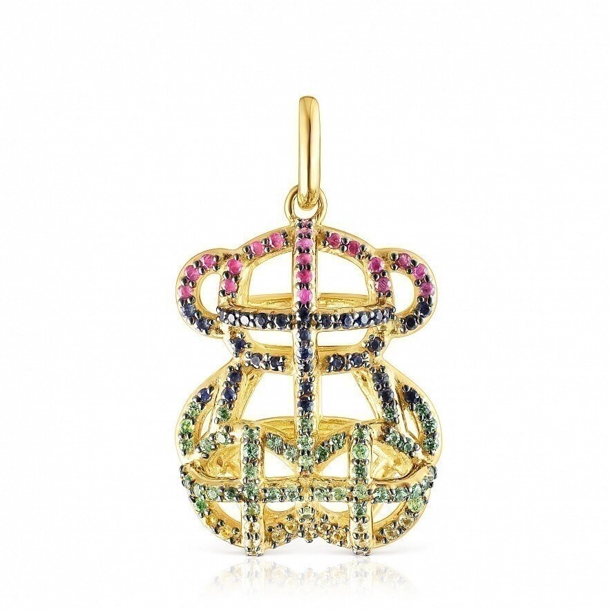 Большой кулон TOUS Costura из серебра 925 пробы с покрытием Vermeil , с голубыми и жёлтыми сапфирами, цаворитами и рубинами. Размер подвески: 2,5 см. Vermeil : серебро с покрытием 18-каратным золотом.