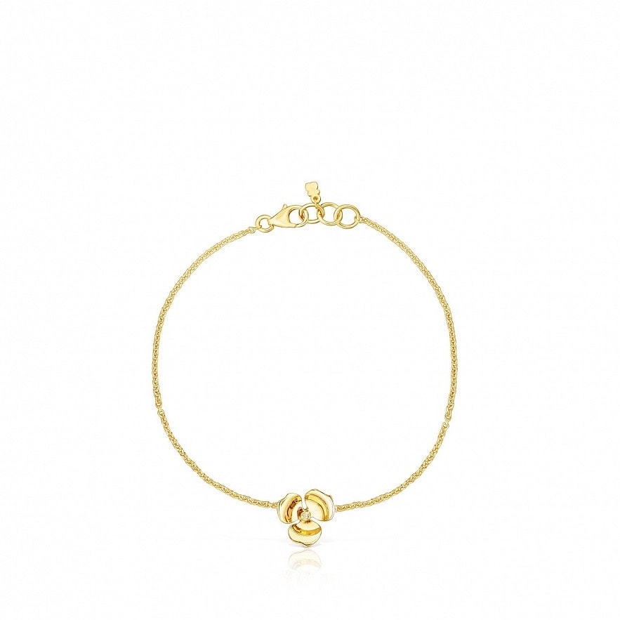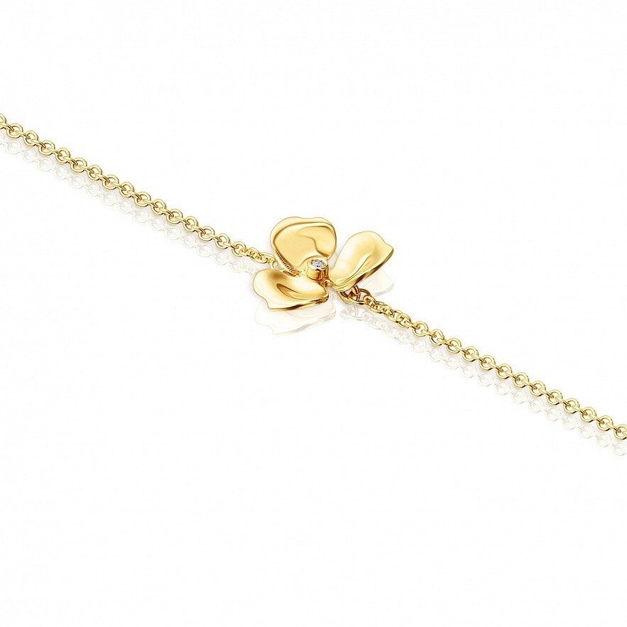 Браслет TOUS Fragile Nature из желтого золота 18 карат с бриллиантом 0,005 карат, H/SI. Размер цветка: 1 см. Длина браслета: 17,5 см. Техника изготовления: литье.