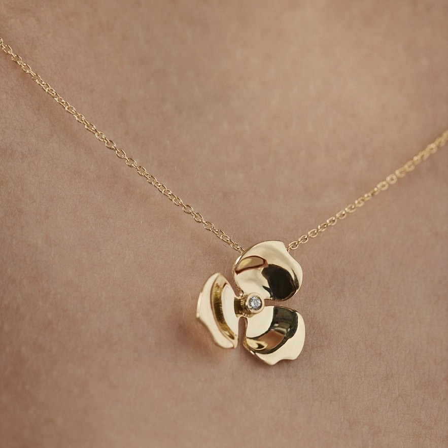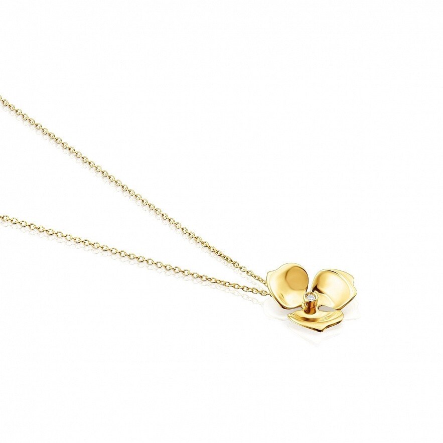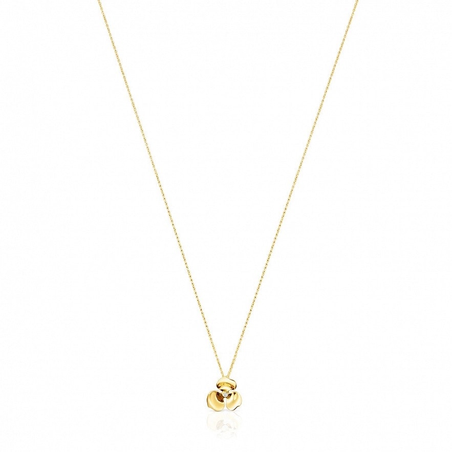 Колье TOUS Fragile Nature из желтого золота 18 карат с бриллиантом 0,008 карат, H/SI. Размер цветка: 1,2 см. Длина бусы: 45 см. Техника изготовления: литье.
