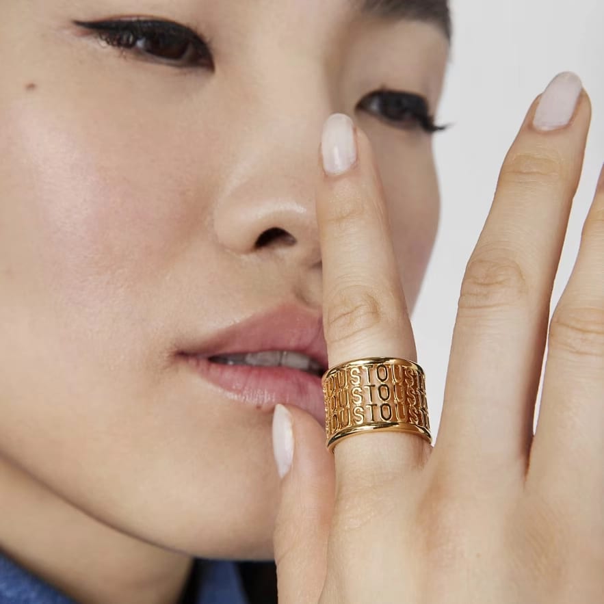 Кольцо TOUS Logo из серебра 925 пробы с покрытием Vermeil . Ширина кольца: 15 мм. Толщина кольца: 1,7 мм.