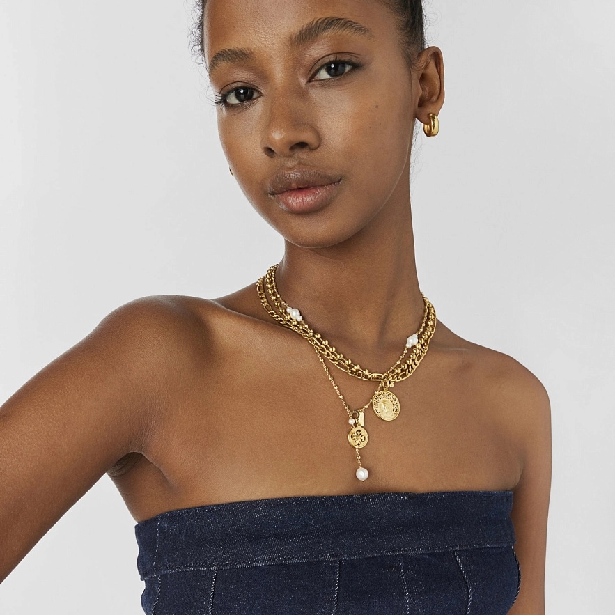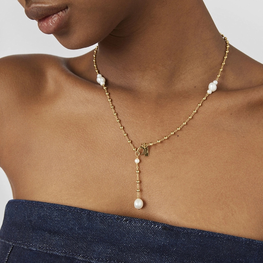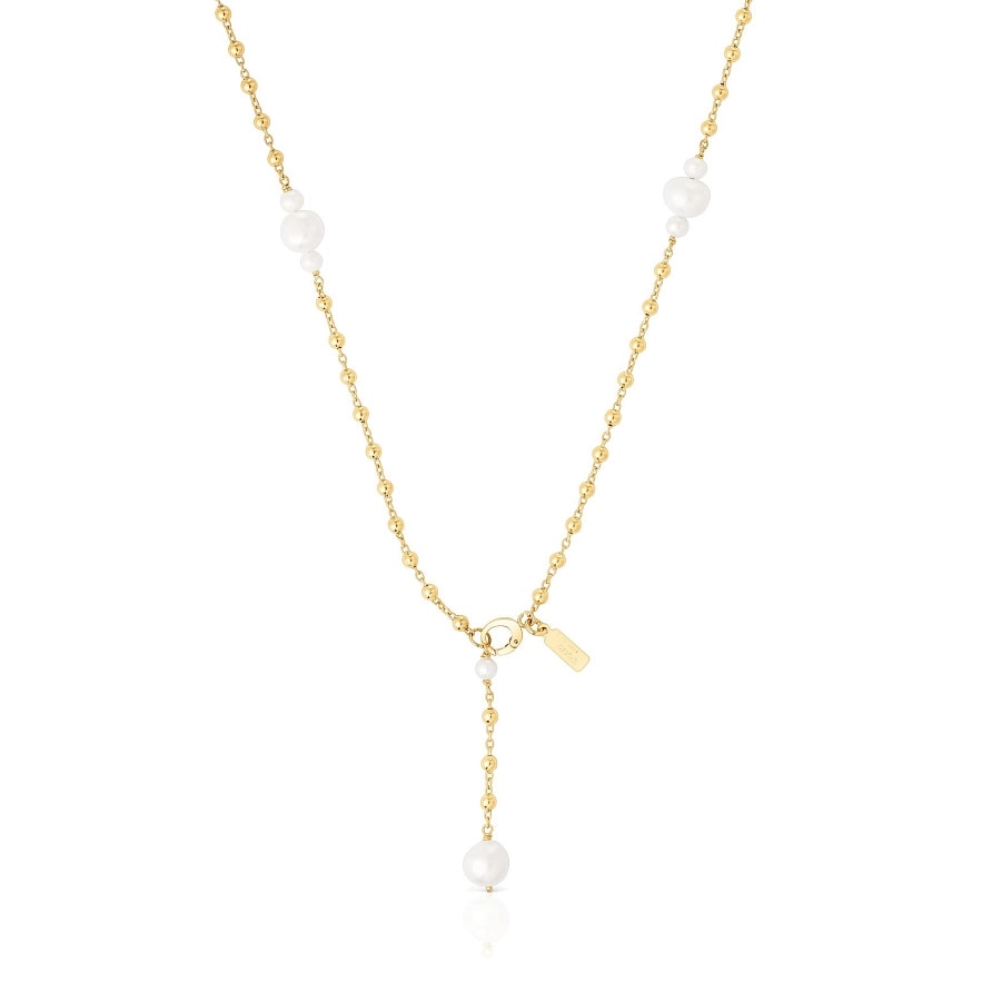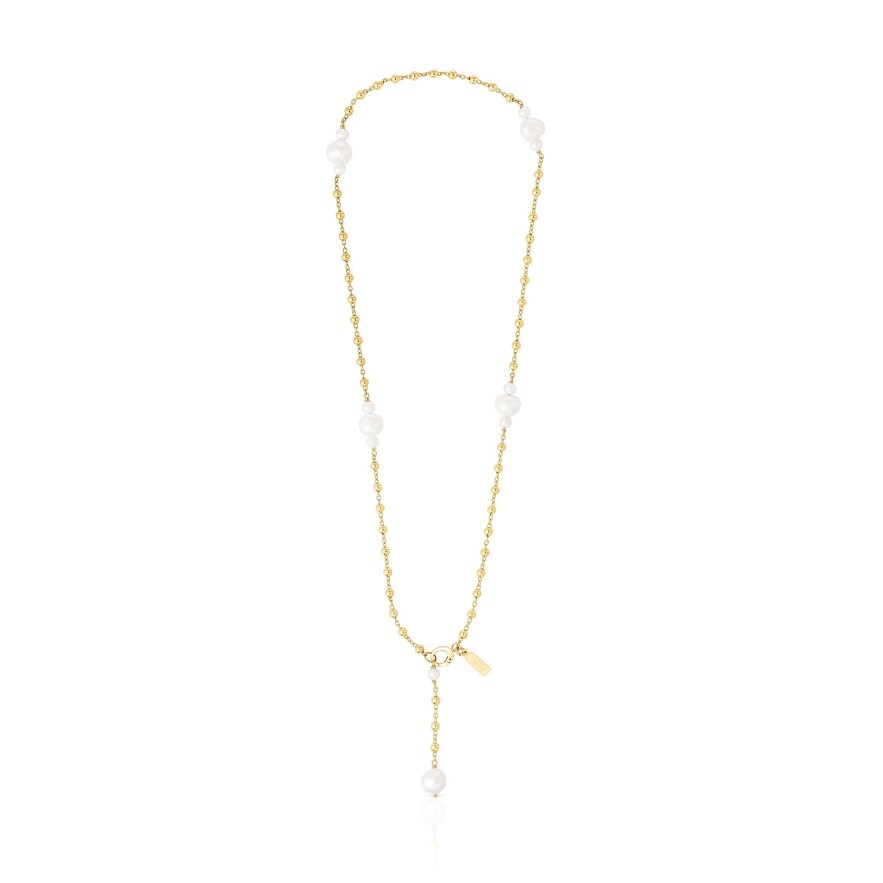 Колье Tamara Falcó X TOUS с золотым покрытием 18 карат поверх серебра и культивированным жемчугом и шариками с золотым покрытием 18 карат поверх серебра. Размер культивированного жемчуга: 4-4,5 мм и 7,5-8,5 мм. Размер шаров: 3 мм. Длина колье: 49,5 см. Застежка-карабина. Изделие изготовлено из серебра 925 пробы с золотым покрытием от 18 до 23 карат и толщиной 3 микрона. Это качество гарантирует большую долговечность украшения.