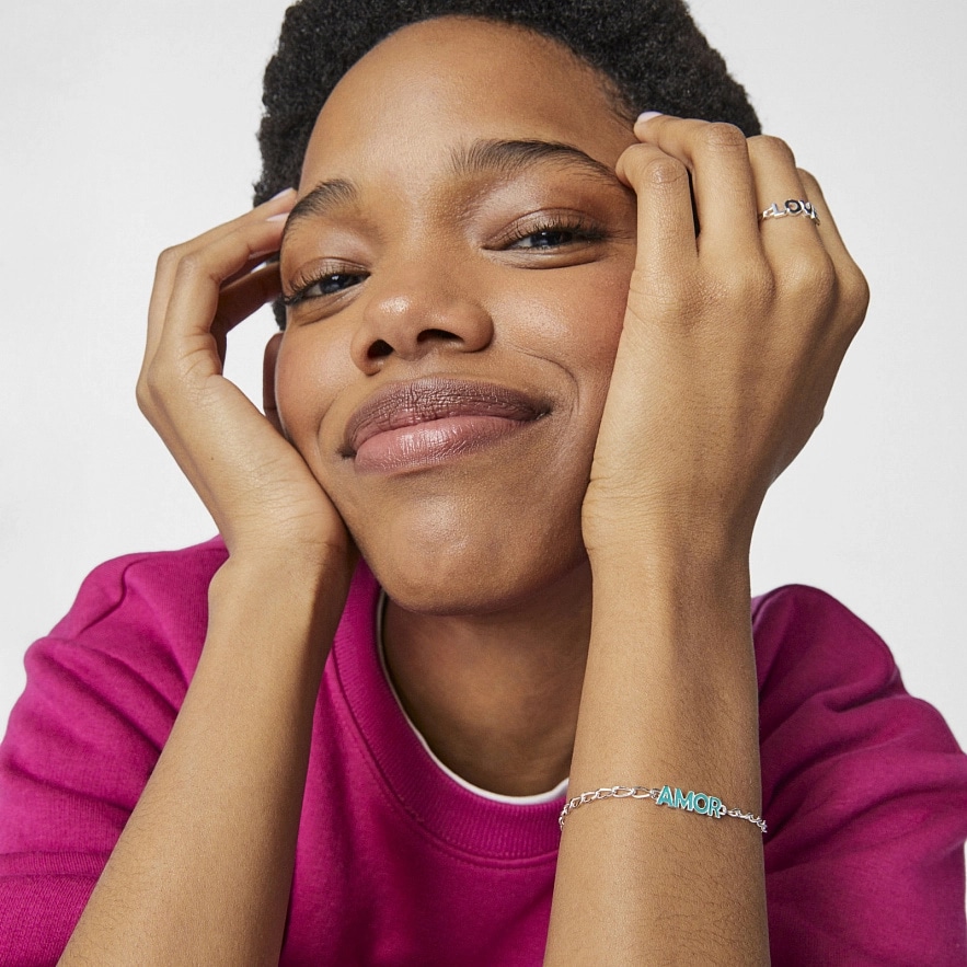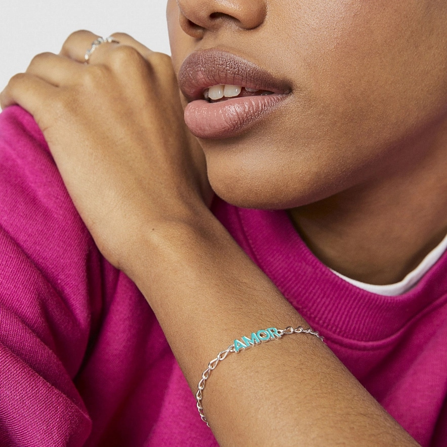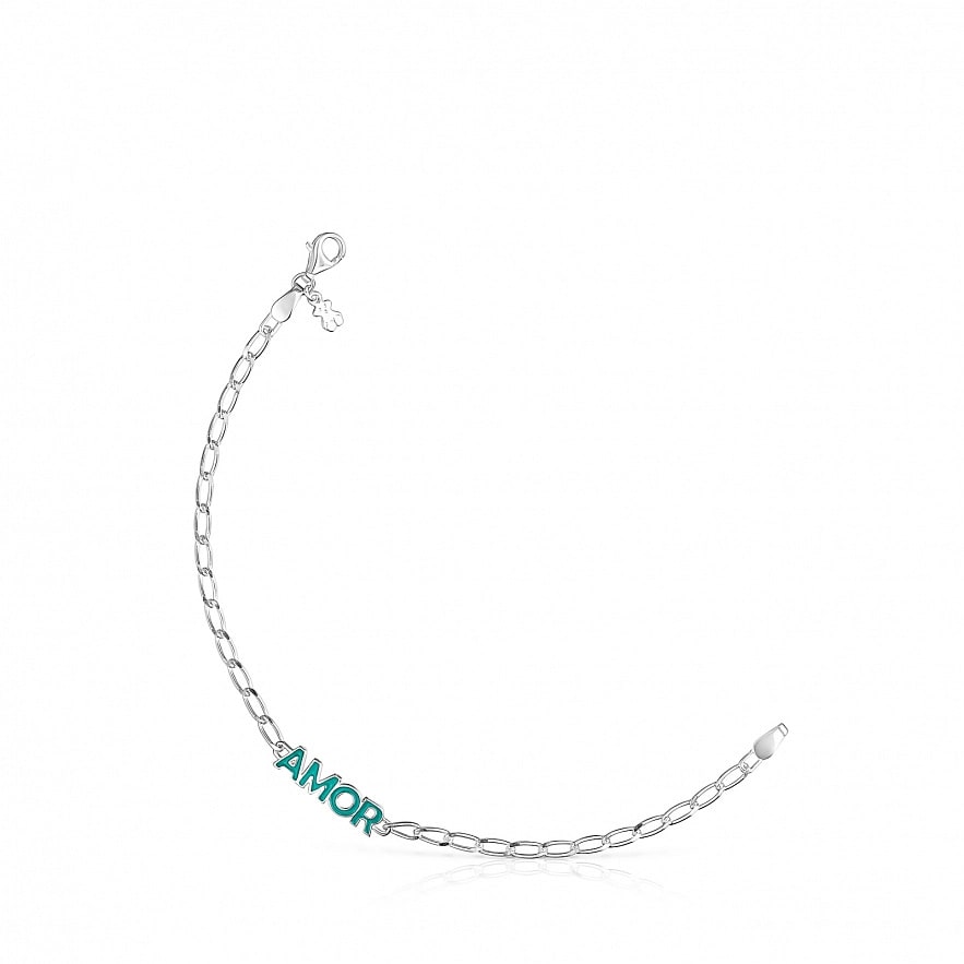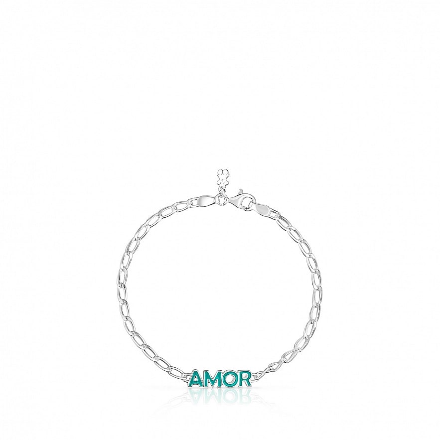 Браслет TOUS Crossword из серебра 925 пробы с мотивом AMOR в синей эмали.