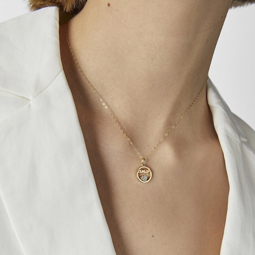 Кулон TOUS Crossword Love из желтого золота 750 проби и сердцем с бриллиантами 0.036 ct, H/SI диаметром 8 мм. Размер медальона: 12 мм. Подвеска не включает в себя цепь.