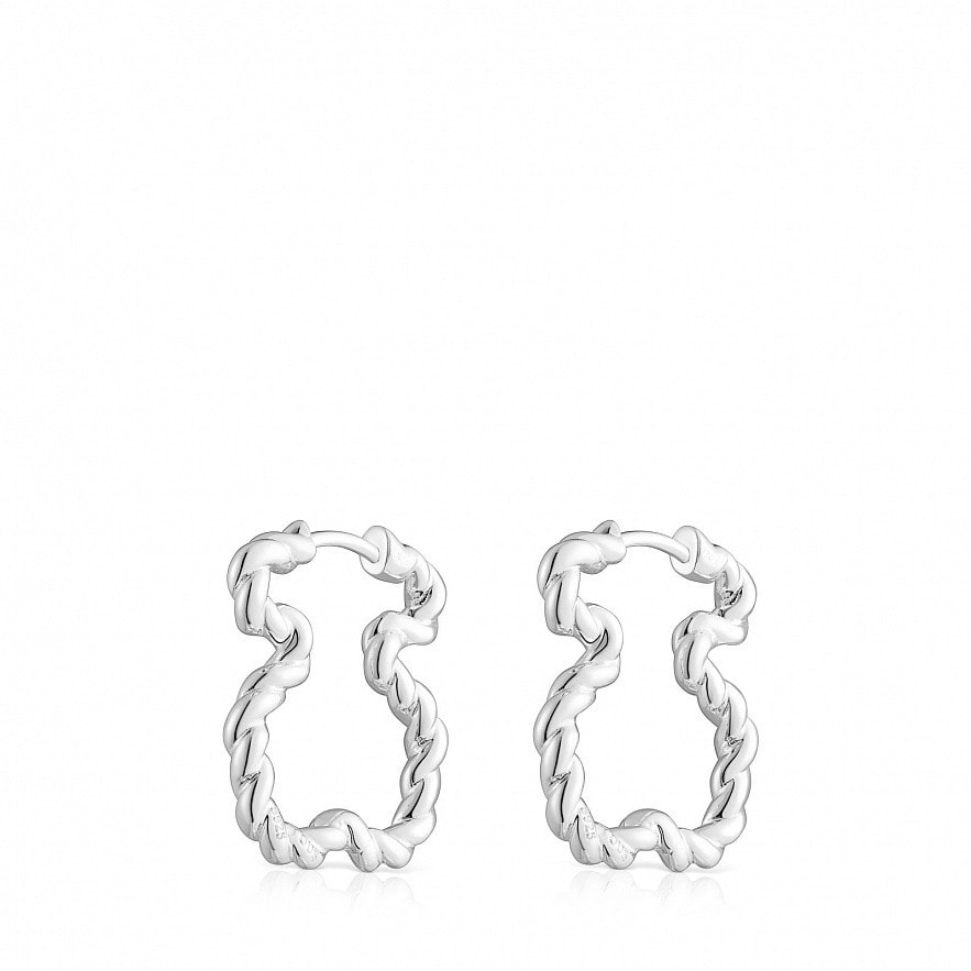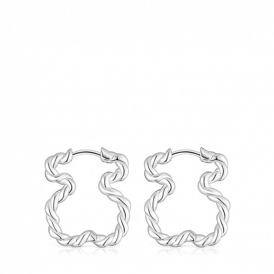 Серьги Twisted в форме мишки размером 22 мм из серебра 925 пробы. Застежка кольцом.