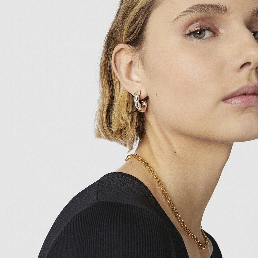 TOUS Twisted серьги-кольца из серебра 925 пробы. Размер серьги: 25мм. Застежка-пусет. Технология производства: Гальванопластика без внутреннего стержня.