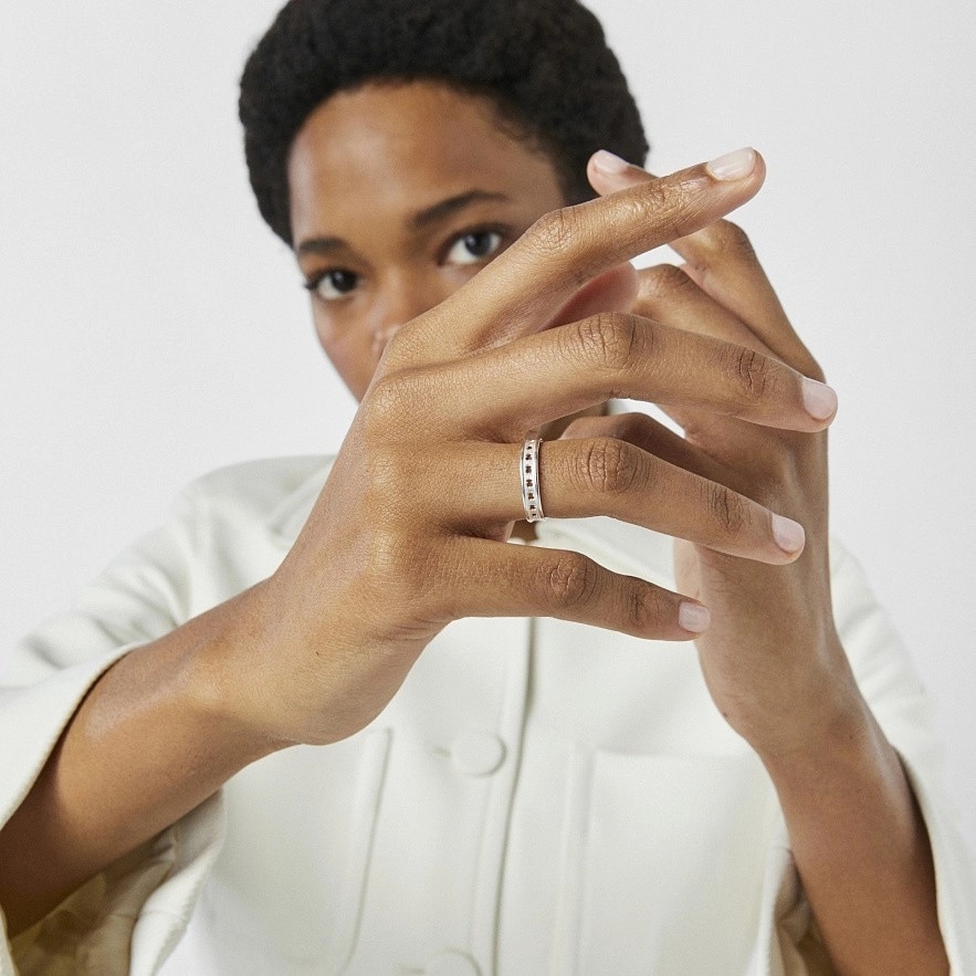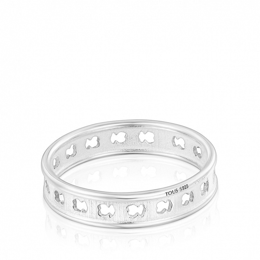 Кольцо TOUS Bear Row из серебра 925 пробы с перфорированными деталями силуэта медведя вокруг кольца.