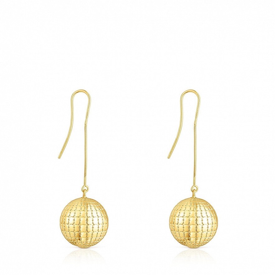 Серьги TOUS St. Tropez Disco из серебра 925 пробы с покрытием Vermeil с гравировкой медведей. Диаметр: 25 мм. Длина: 49 мм.