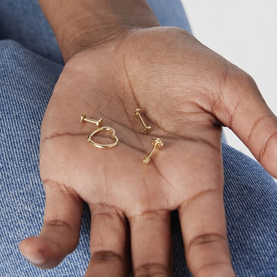 Пирсинг для ушей TOUS Basics из 18-каратного желтого золота с застежкой в форме сердца и стержнем длиной 8 мм. Пирсинг изготовлен из биосовместимого и гипоаллергенного металла, не стерилизован. Подходит для первого пирсинга. Рекомендуется для ушей.