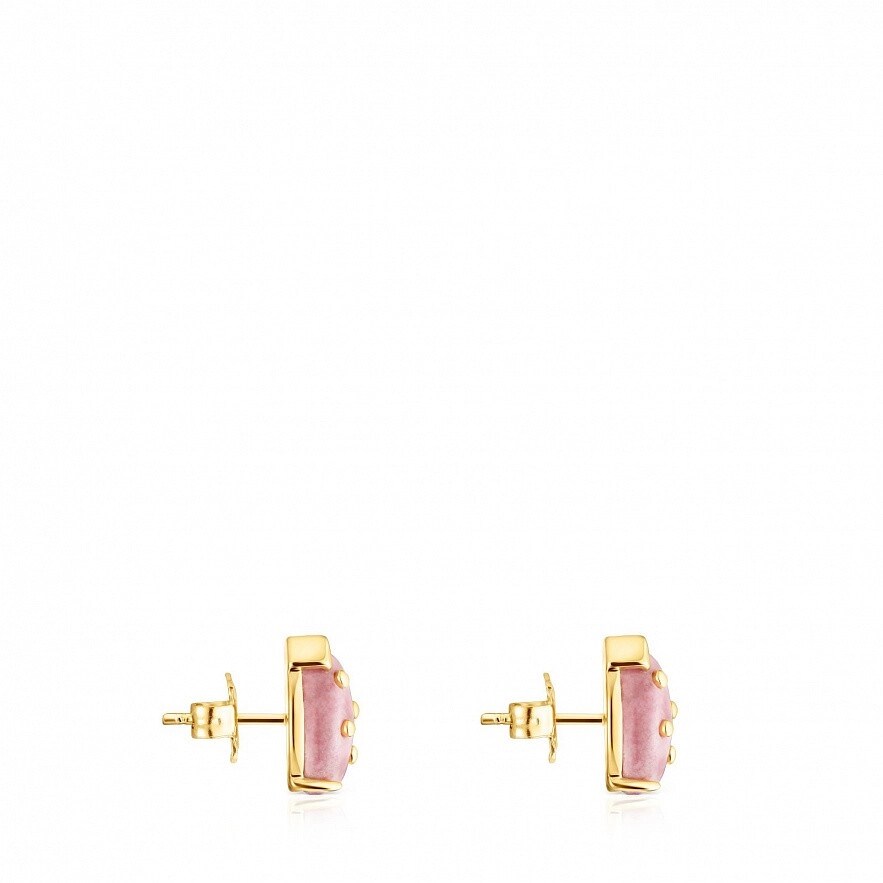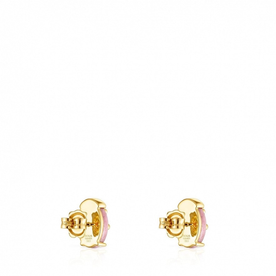 Серьги TOUS Virtual Garden из серебра 925 пробы с покрытием Vermeil с родонитом размером 12 x 8 мм и деталями, имитирующими форму насекомого. Застежка - пусет. Vermeil : серебро с покрытием золота 18 карат.