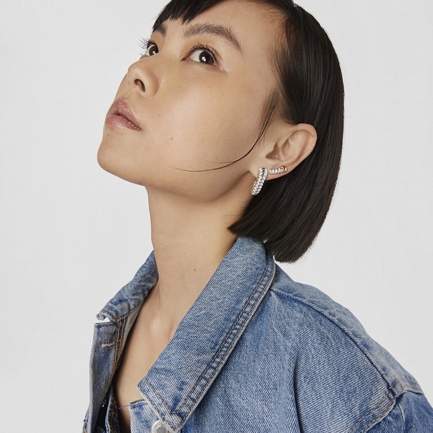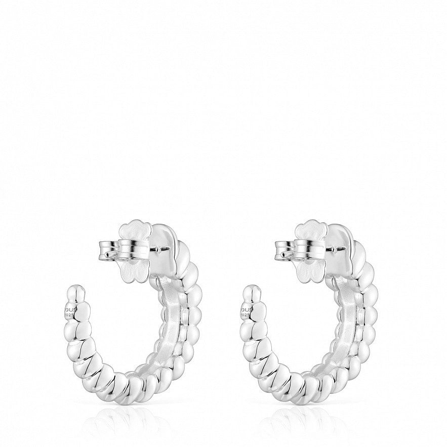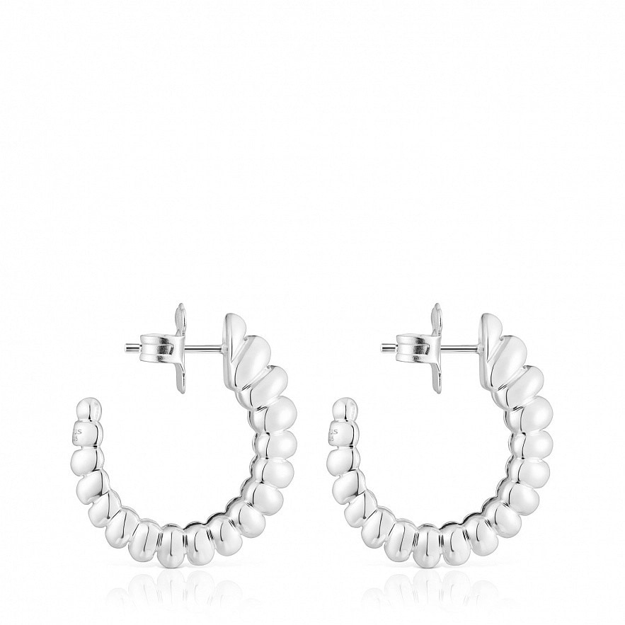 Серьги-обручи TOUS Virtual Garden из серебра 925 пробы, имитирующие строение гусеницы. Диаметр: 15 мм. Застежка-пусет.