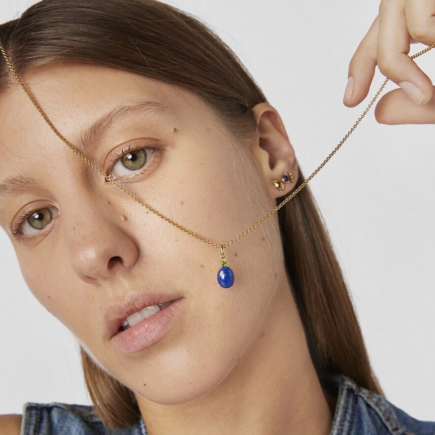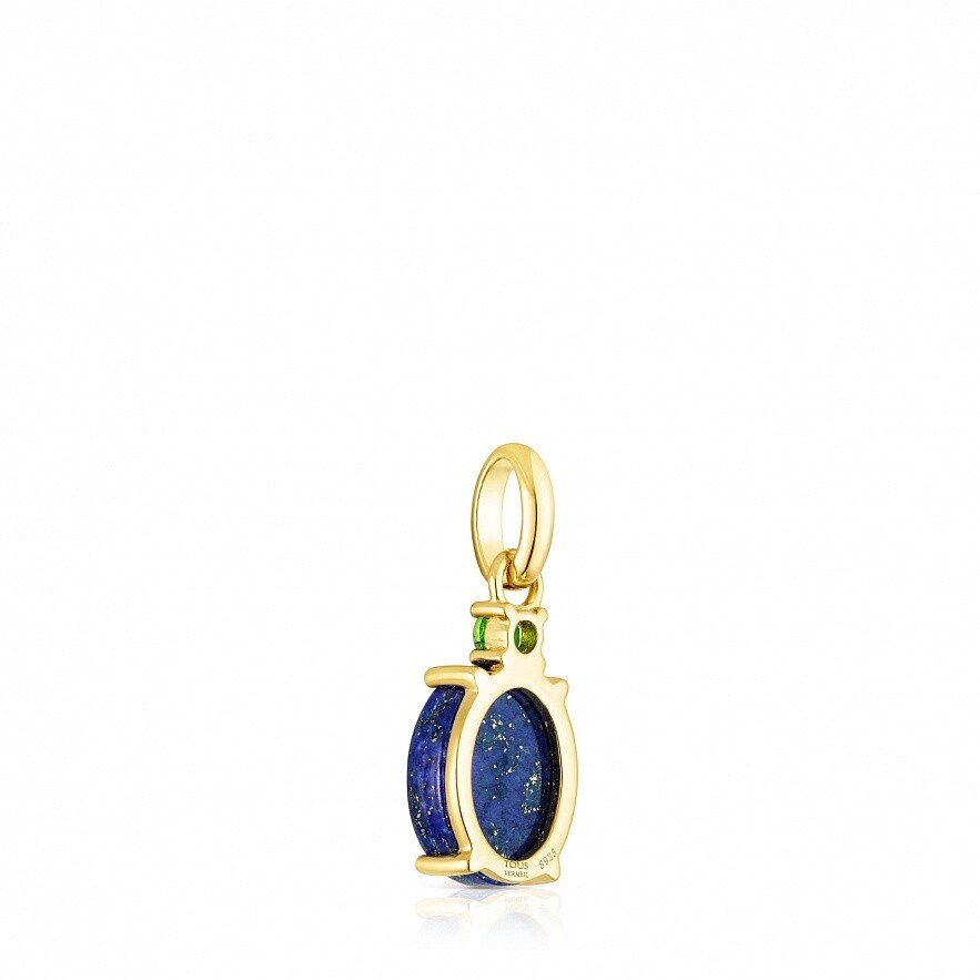 Подвеска TOUS Virtual Garden из серебра 925 пробы с покрытием Vermeil с драгоценным камнем лазурита размером 10 мм и установленным 2,3-миллиметровым хромовым диопсидом вверху, имитирующим форму насекомого. Размер: 11 мм. Цепочка в комплект не входит. Vermeil : серебро с покрытием золота 18 карат.