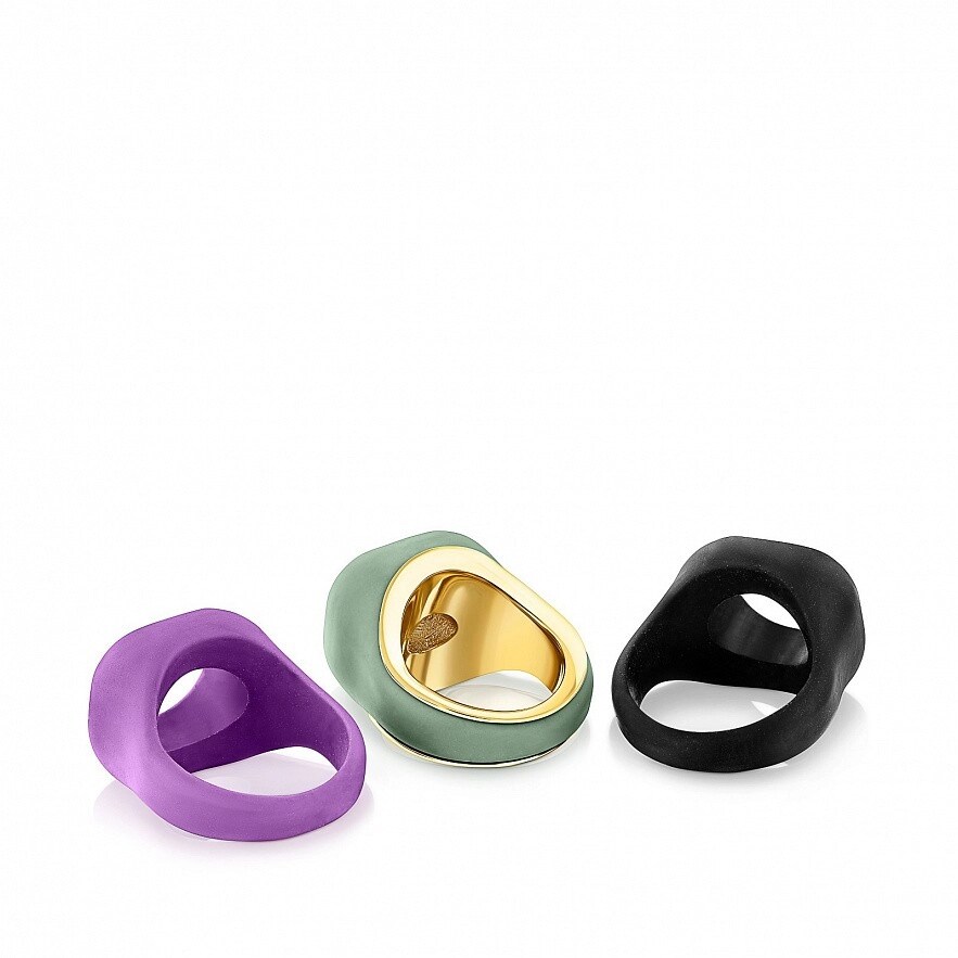Кольцо-печатка TOUS Virtual Garden из серебра 925 пробы с покрытием Vermeil с камнями аметиста и диопсидов хрома, окружающих основной драгоценный камень. В комплект входит гибкий сменный материал трех разных цветов: фиолетового, зеленого и черного. Внутри есть четыре высечки в форме звезды, окружающие драгоценный камень. Размер драгоценного камня: 9,5 х 7,6 х 4 мм. Ширина кольца: 19 мм. Толщина: 2 мм. Vermeil : серебро с покрытием золота 18 карат.