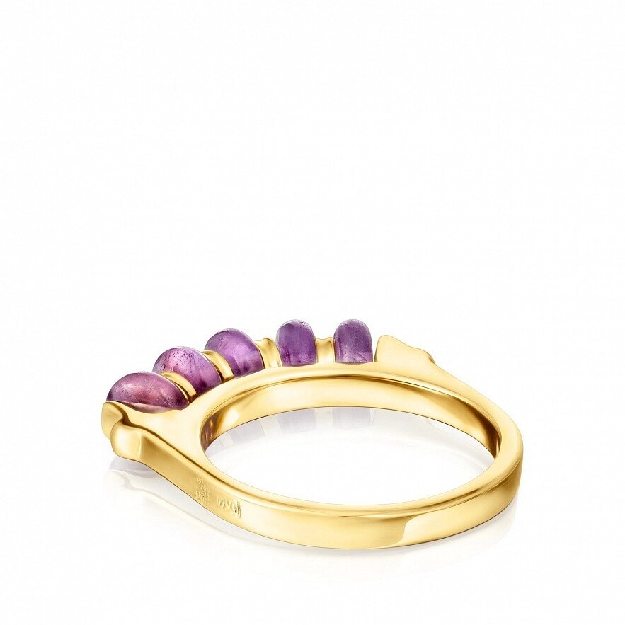 Кольцо TOUS Virtual Garden из серебра 925 пробы с покрытием Vermeil , имитирующим структуру гусеницы, с аметистами. Ширина камней: 5 мм. Ширина кольца: 3 мм. Толщина кольца: 1,5 мм. Vermeil : серебро с покрытием золота 18 карат.