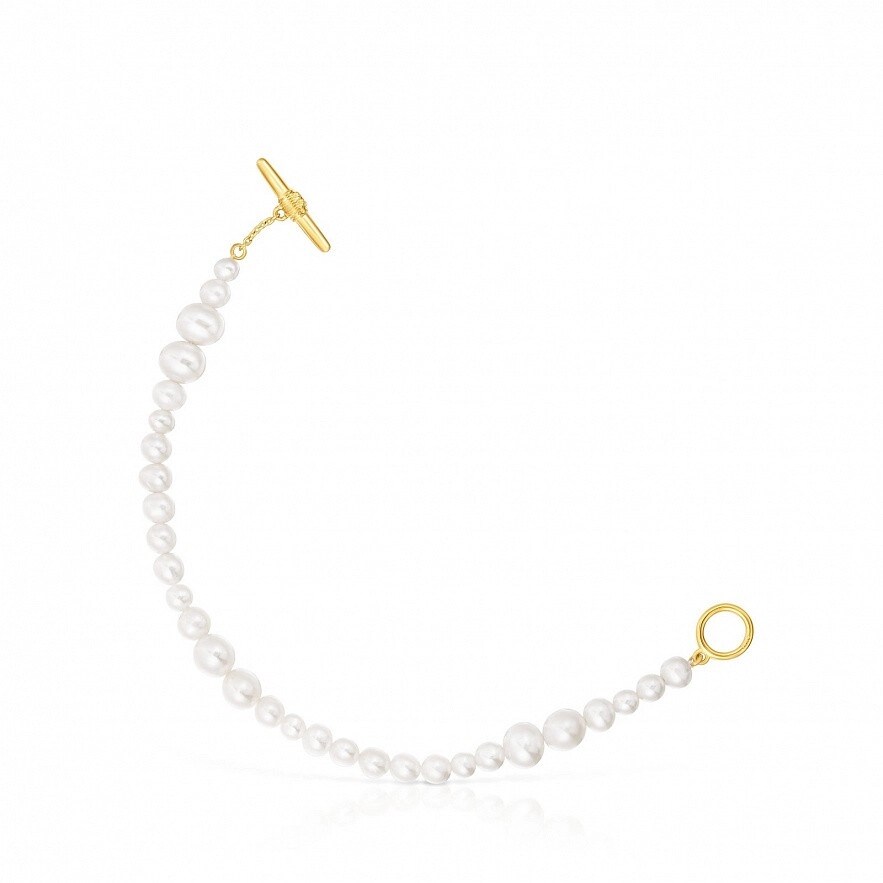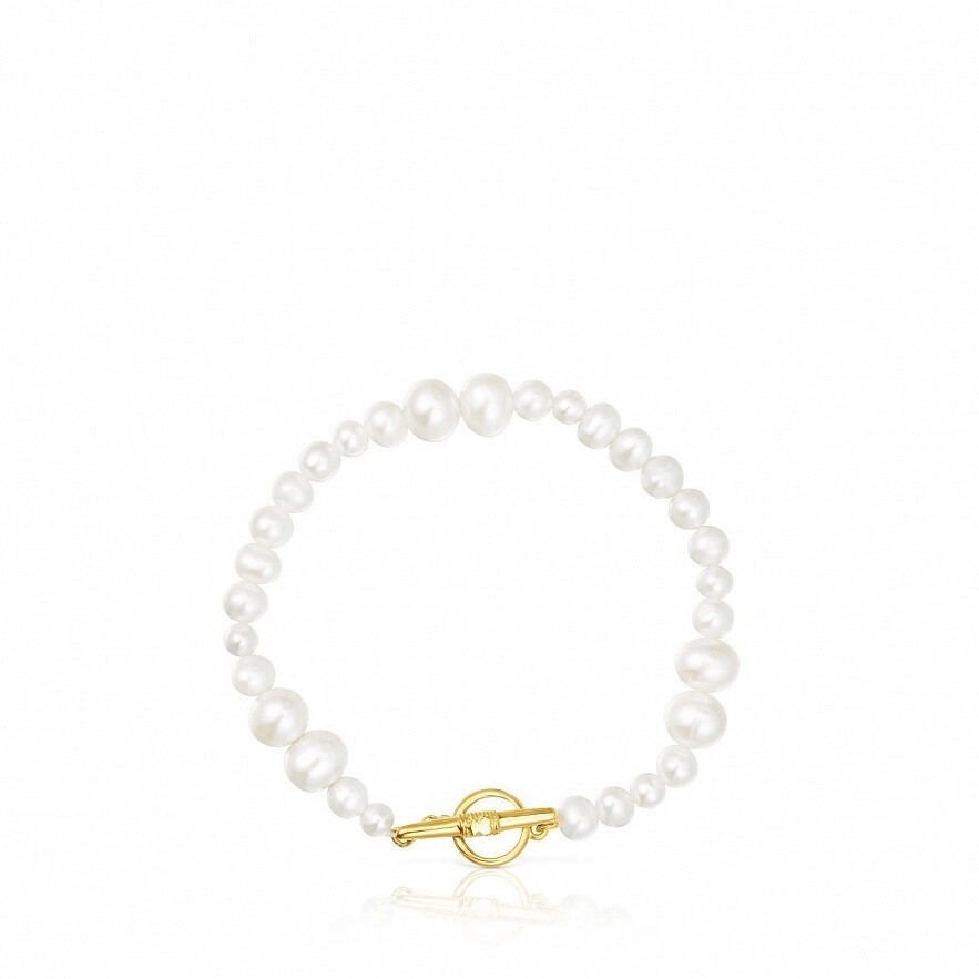 Браслет TOUS Lure из культивированного жемчуга с застежкой из серебра 925 пробы с покрытием Vermeil и с 3 мм деталью мишки в центре застежки. Размер культивированного жемчуга: 4-7 мм. Длина браслета: 20 см. Vermeil : серебро с покрытием золота 18 карат.