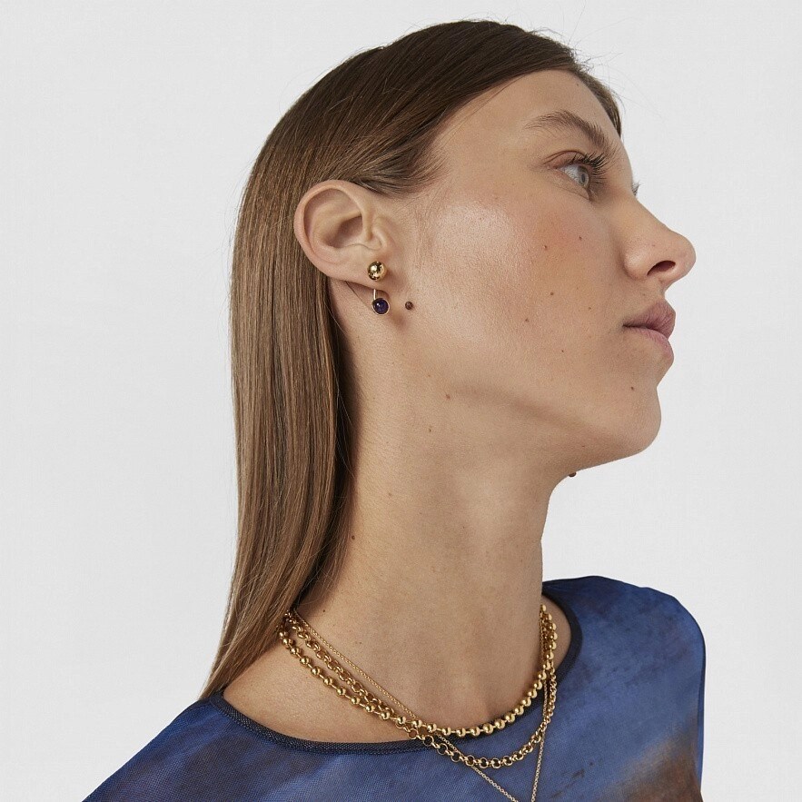 Серьги TOUS Plump из серебра 925 пробы с покрытием Vermeil с драгоценными камнями, которые можно использовать как вместе, так и по отдельности. Мотив шарика диаметром 8 мм с мишкой размером 3 мм. На съемной части серьги - аметист и лабрадорит диаметром 6-6,5 мм. Общая длина серьги: 20 мм. Застежка-пусет. Примечание: только часть серьги с шариком имеет застежку-пусет. Vermeil : серебро с покрытием золота 18 карат.