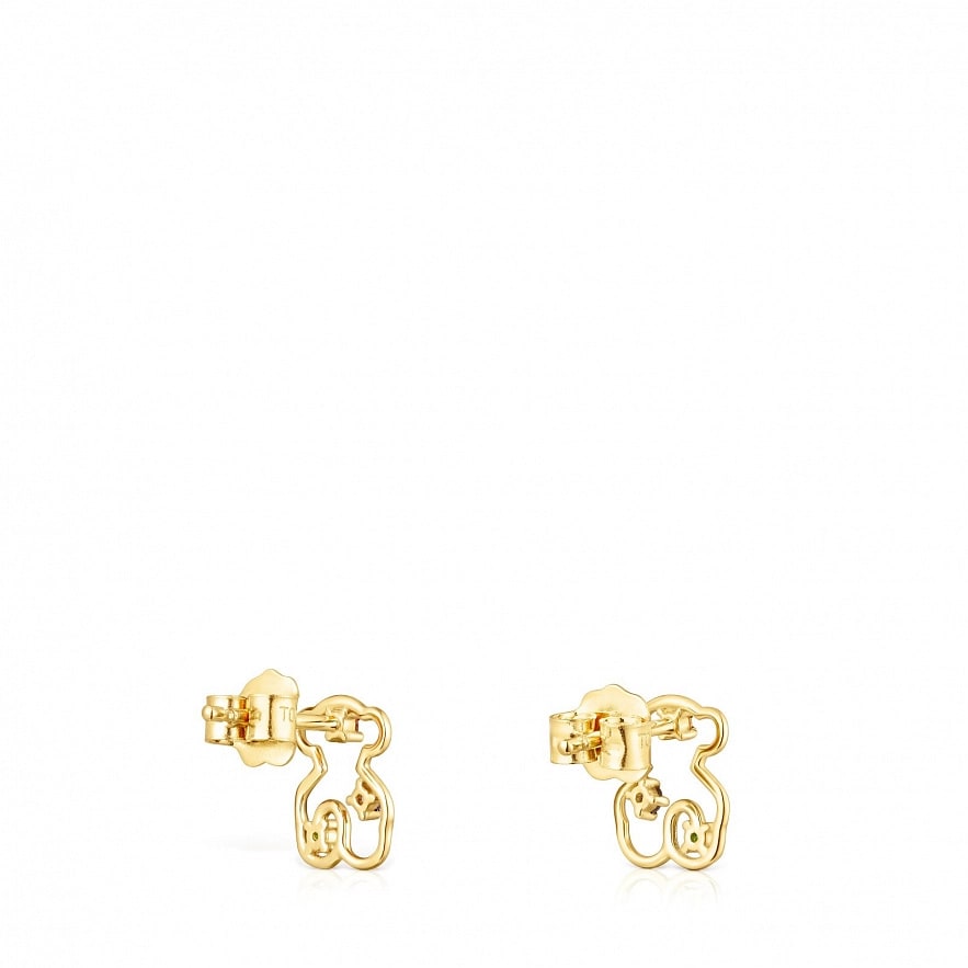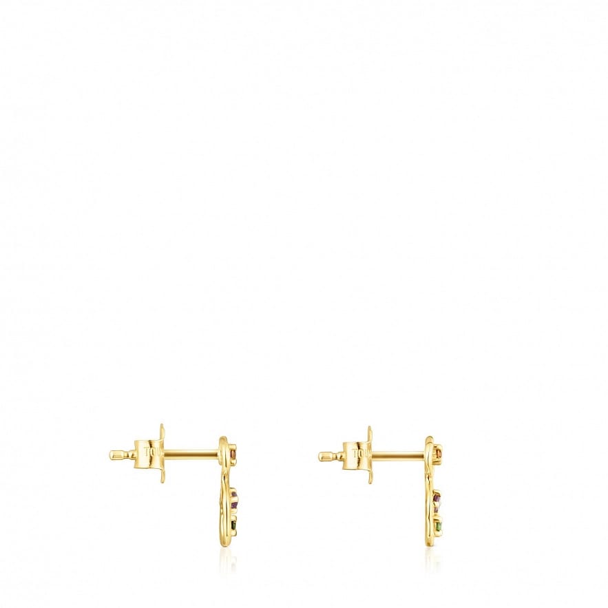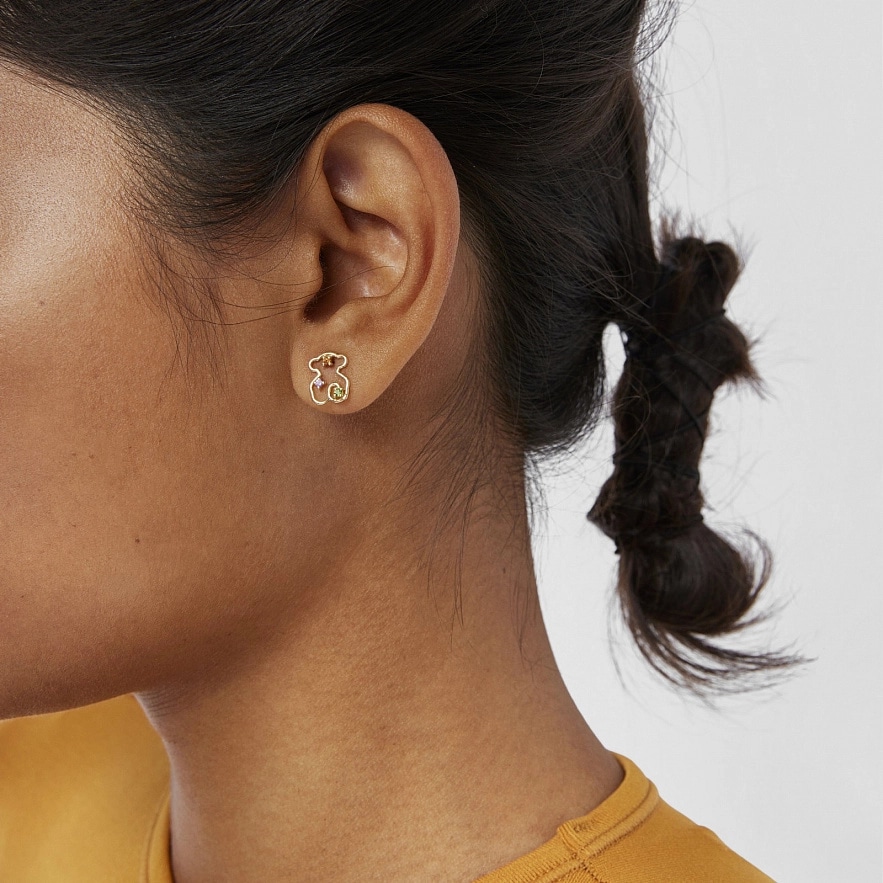 Серьги TOUS Tsuri Bear из золота 750 пробы с драгоценными камнями, расположенными вокруг силуэта медведя. Камни: гранат, аметист и диопсид хрома. Размер камней: 1,5 мм. Размер овала: 12 мм.