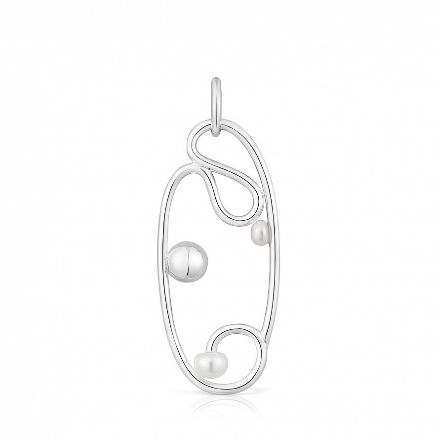 Кулон TOUS Tsuri из стерлингового серебра с культивированным жемчугом на овальном силуэте. Размер жемчуга: 3 и 5 мм. Размер овала: 40 мм.