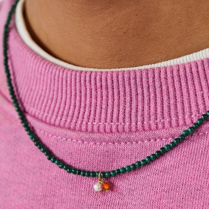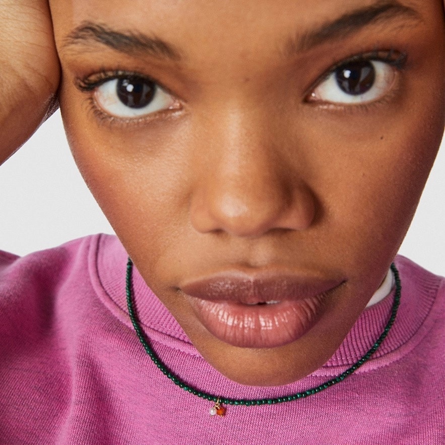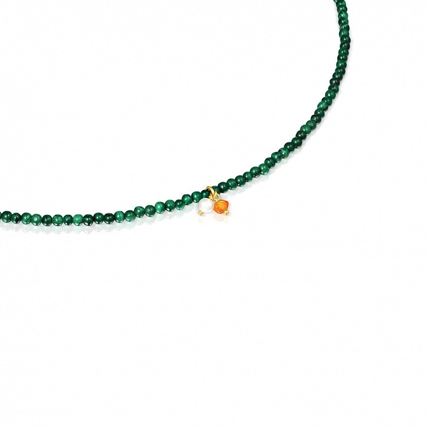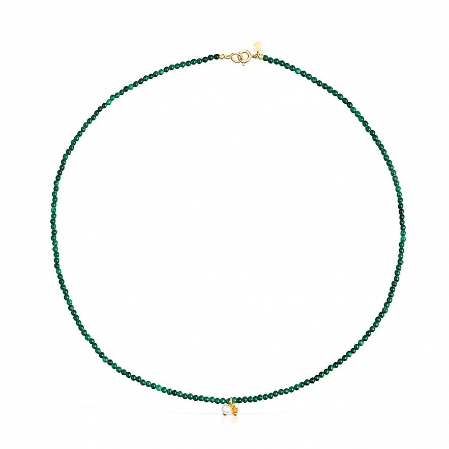 Чокер TOUS Camille из серебра покрытого 18-каратним золотом и гладкими шариками из малахита толщиной 2 мм. Длина: 43см. Изделие изготовлено из стерлингового серебра с позолотой от 18 до 23 карат и толщиной 3 микрона. Это качество гарантирует большую долговечность украшения.