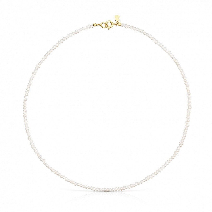 Чокер TOUS Camille с покрытием из 18-каратного золота поверх серебра и белым жемчугом круглой огранки диаметром 2 мм.Длина: 38см.Изделие изготовлено из стерлингового серебра с позолотой от 18 до 23 карат и толщиной 3 микрона.Это качество гарантирует большую долговечность украшения.