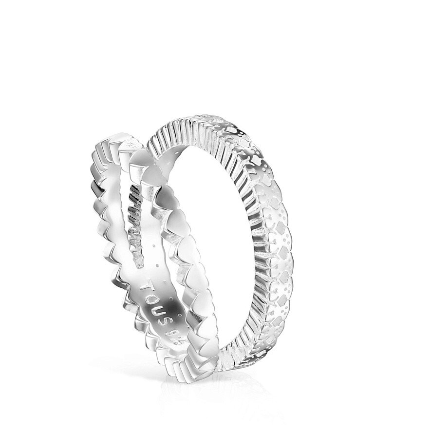 Двойное кольцо TOUS Straight из стерлингового серебра 925 пробы. Ширина кольца: 1см.