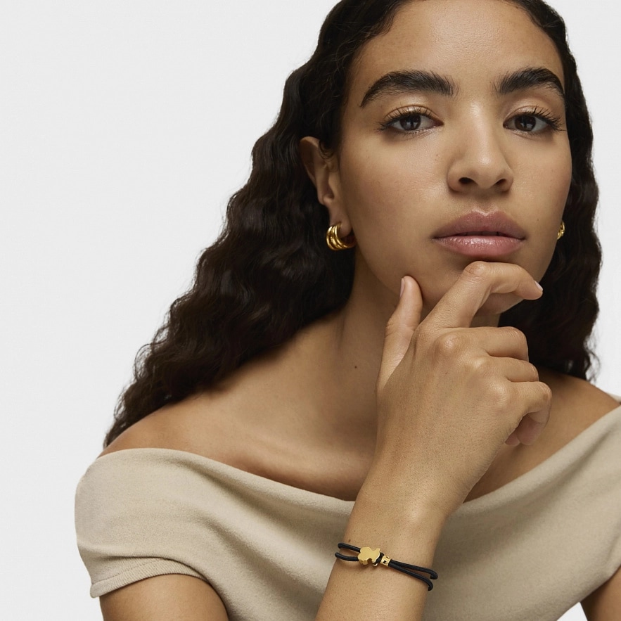Эластичный браслет TOUS Sweet Dolls черного цвета размером 17 см, с мотивом мишки из серебра 925 пробы с покрытием Vermeil . Техника изготовления: Литье. Размер мишки: 11 х 8 мм.
