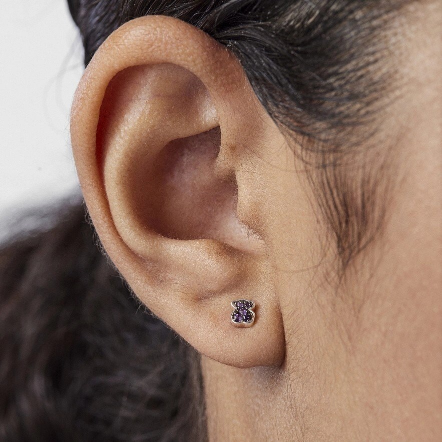 TOUS New Motif серьги из серебра 925 пробы с изображением медведя из аметистов. Застежка-пусет. Размер: 4,6 мм x 3,8 мм.