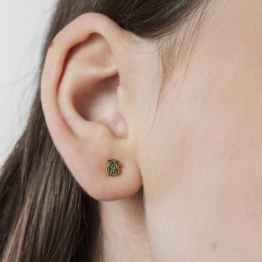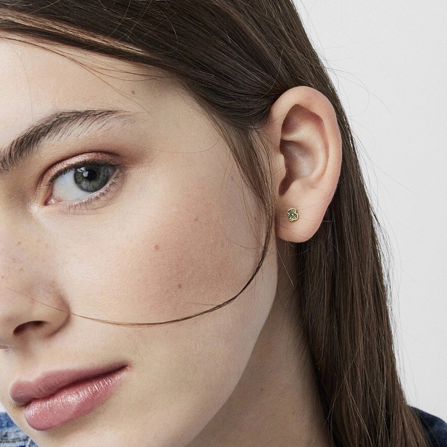 TOUS New Motif серьги из серебра 925 пробы с покрытием Vermeil пробы с мотивом медведя из хромдиопсида. Застежка-пусет. Размер: 4,6 мм x 3,8 мм.