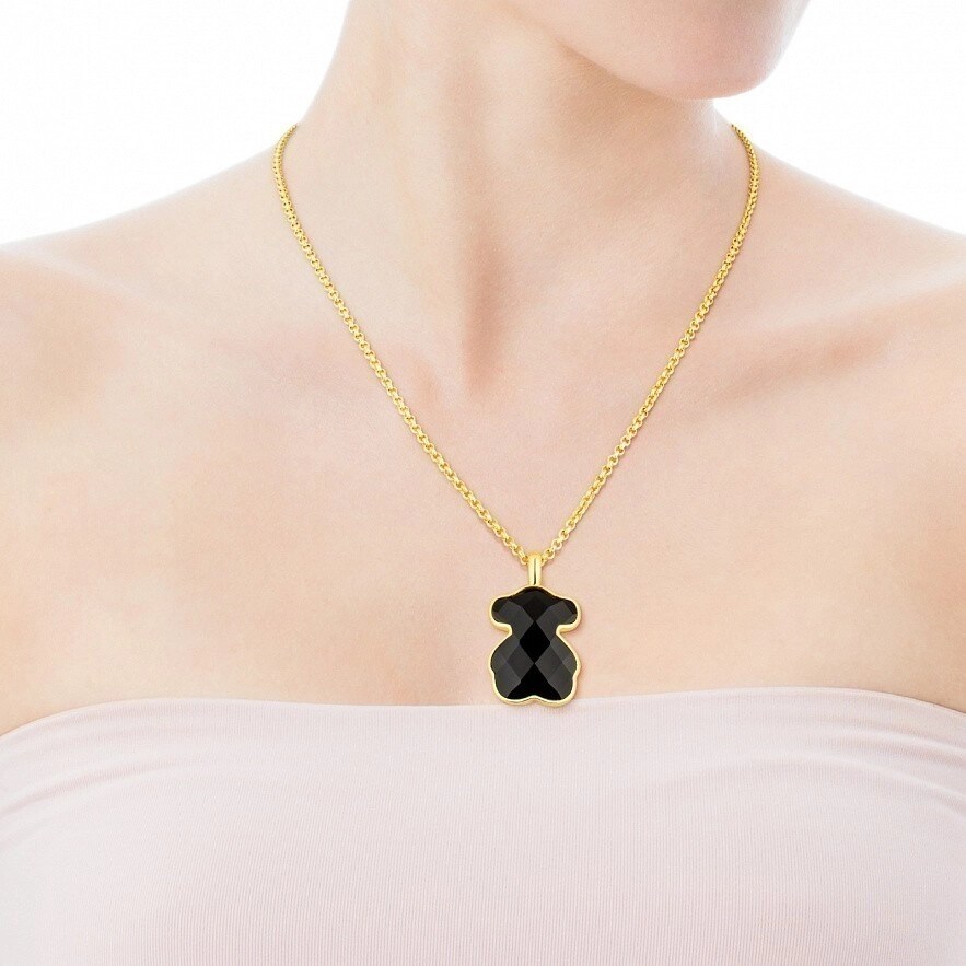 Подвеска TOUS Bear, серебро с покрытием Vermeil и ониксом.Размер: 2,3 см. Vermeil : серебро, покрытое слоем желтого золота 18kt. (Без колье)