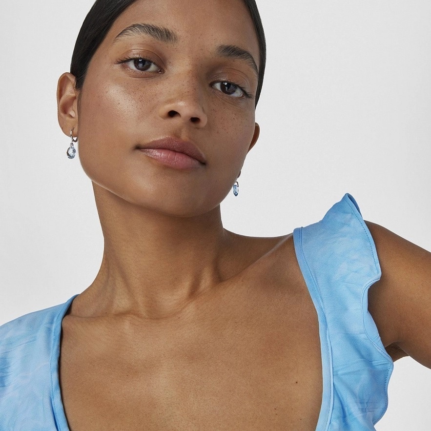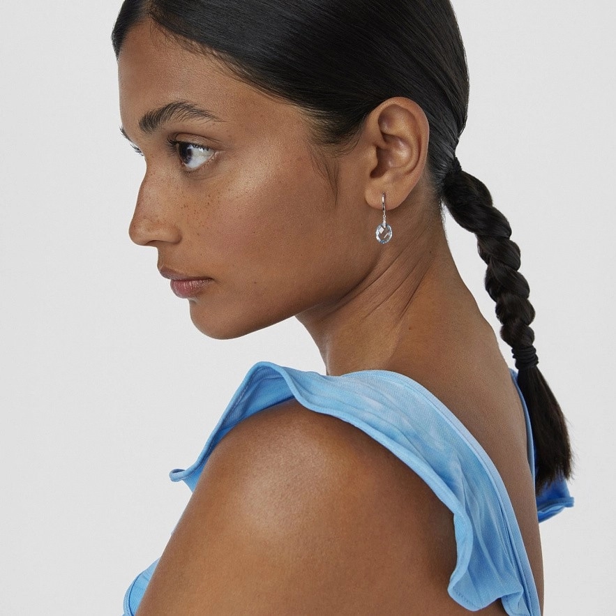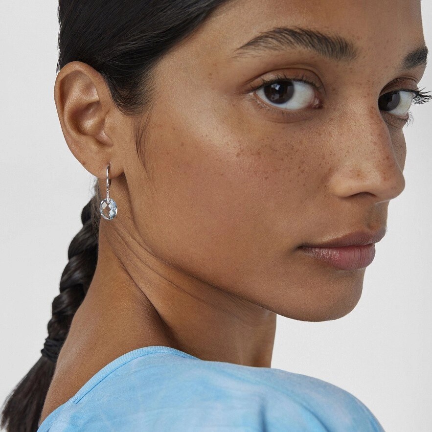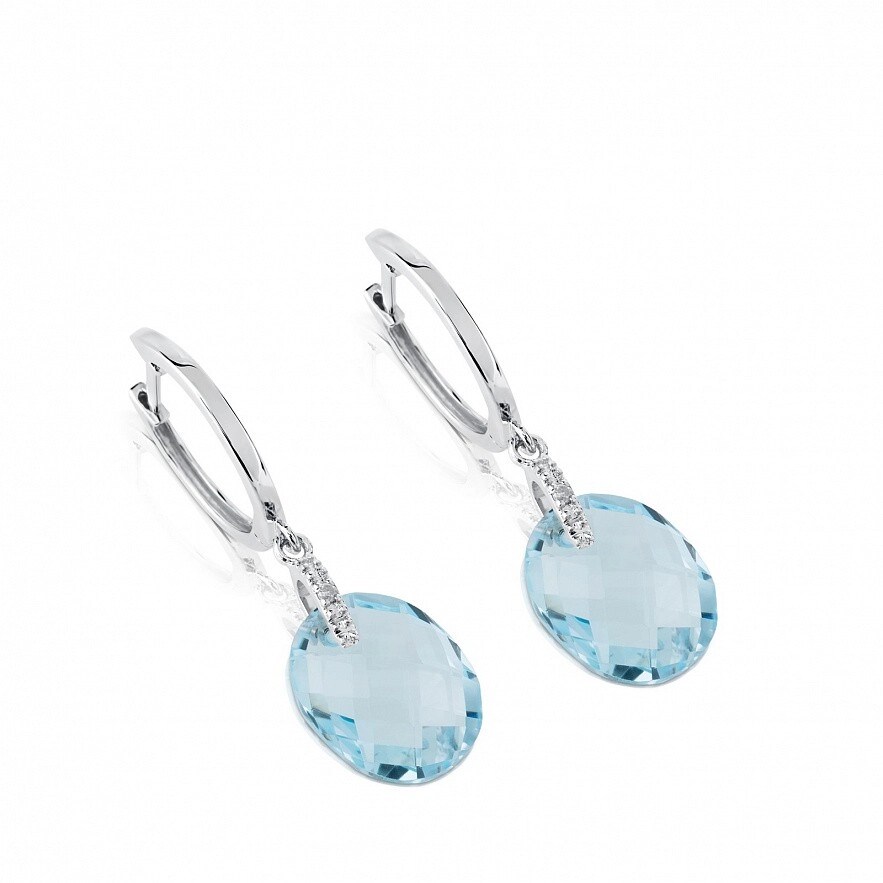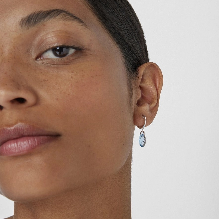 Серьги TOUS Color Kings из белого золота 18 карат с бриллиантами и голубым топазом. Размер: 1,5см.