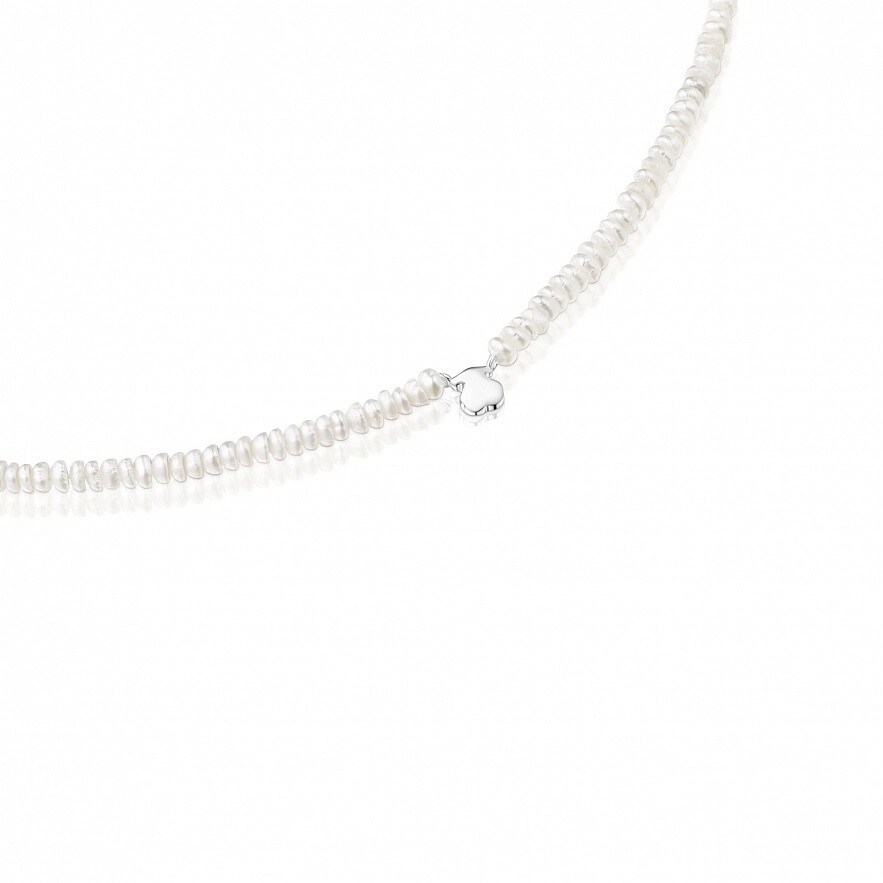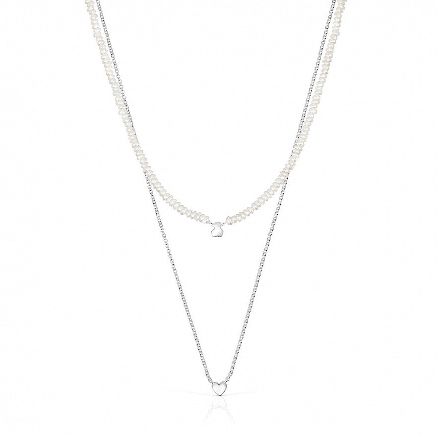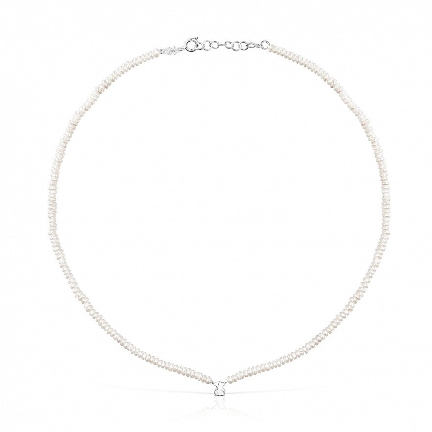 Колье TOUS Mini Icons из серебра 925 пробы и культивированного пресноводного жемчуга с сердцем и мишкой 5-6 мм. Длина колье: 17,5 см.