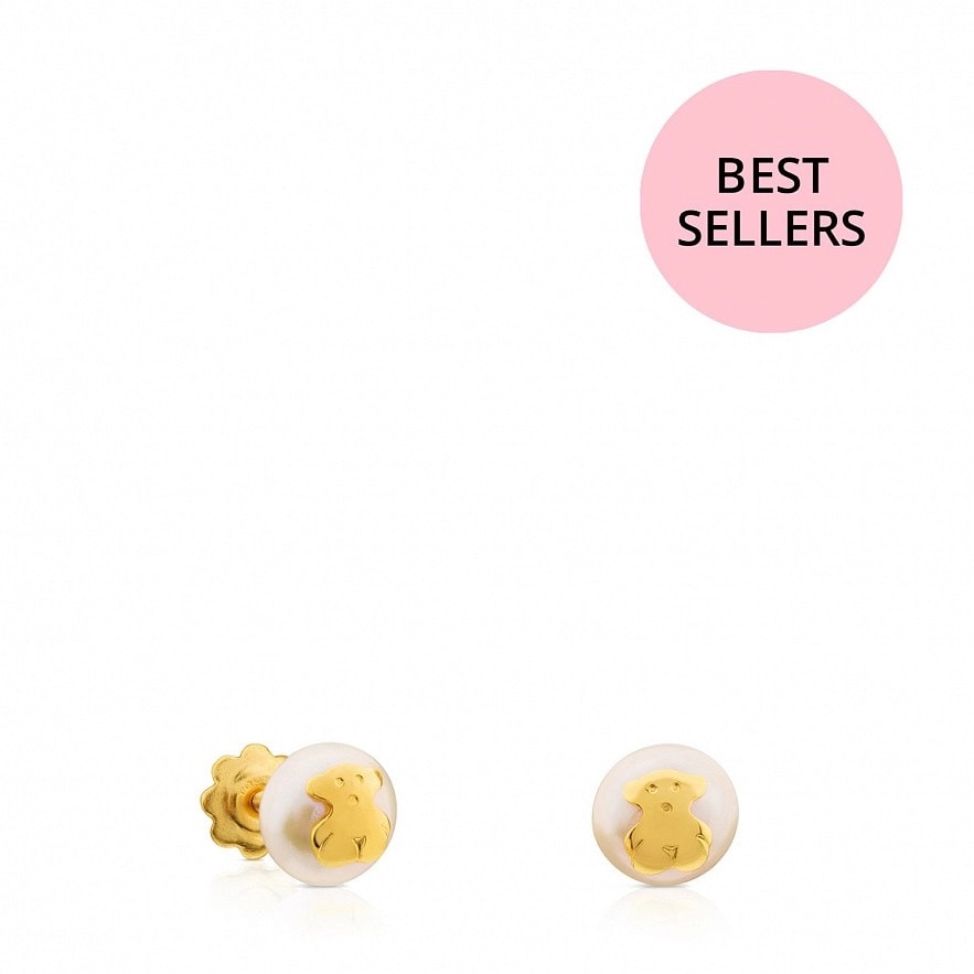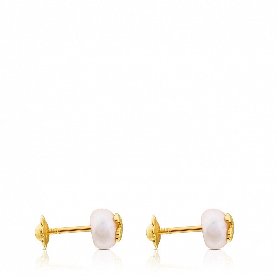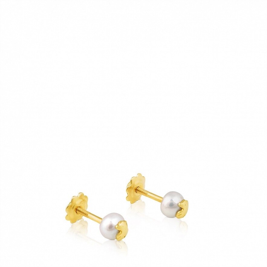 Серьги Baby TOUS, из желтого золота 18 kt, с культивированным пресноводным жемчугом, размером 0,4 см. Застежка-винтик.