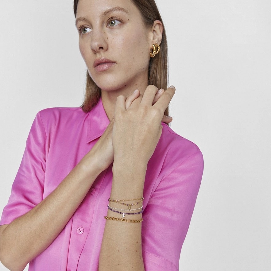 TOUS Bold Bear браслет из серебра 925 пробы с покрытием Vermeil и аметиста, состоящий из двух цепочек, соединенных на концах, одна из них с подвеской в виде медведя из серебра 925 пробы с покрытием Vermeil . Размер драгоценных камней: 2-2,5мм. Размер медведя: 5,35мм. Длина браслета: 17,5 см. Застежка-лобстер.