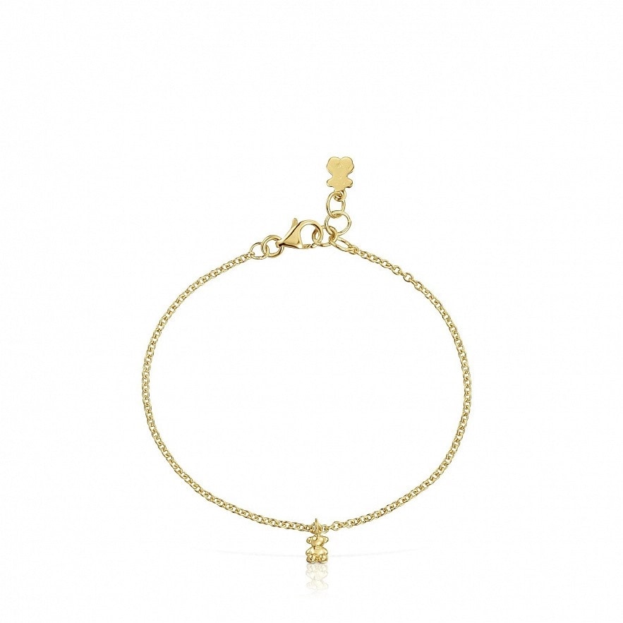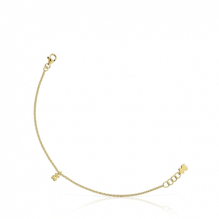 Браслет TOUS Bold Bear из серебра 925 пробы с покрытием Vermeil с мишкой. Размер мишки: 5,35 мм. Длина браслета: 17,5 см. Застежка-лобстер. Браслет изготовлен из стерлингового серебра 925 пробы, покрытого золотом 18 карат толщиной от 3 до 5 микрон. Это качество гарантирует большую долговечность драгоценности.