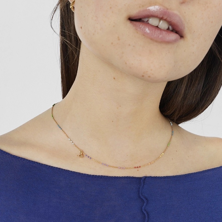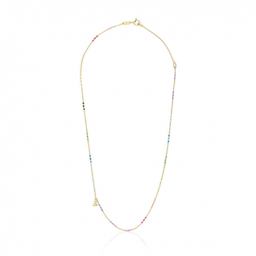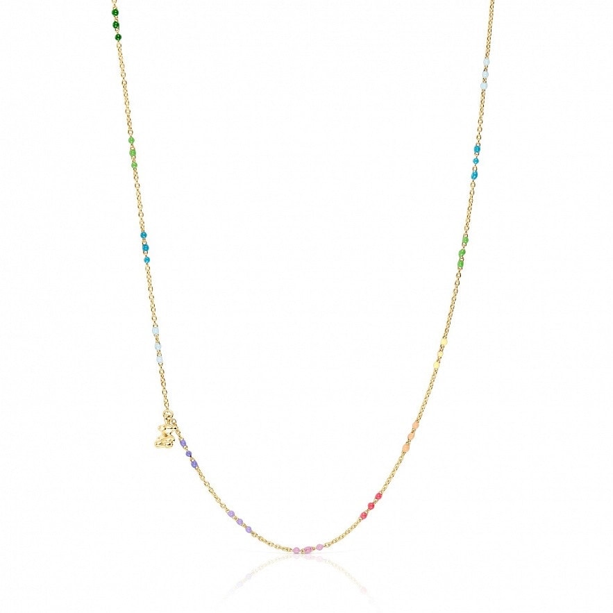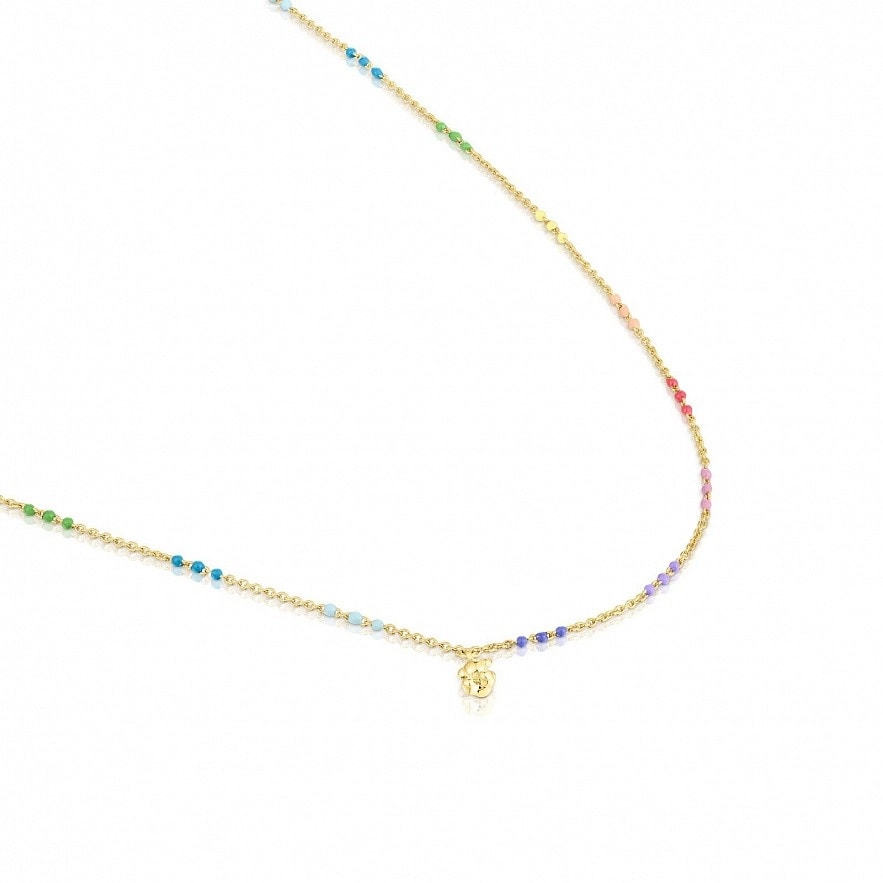Колье TOUS Bold Bear с серебряной веремлей и эмалью разных цветов. Серебряная цепочка из вермеля с эмалированными шариками разных цветов в вкраплениях цепочки и мотива медведя в серебряном вермеле. Размер мишки: 5,35 мм. Длина ожерелья: 40-45 см. Застежка на карабин.
