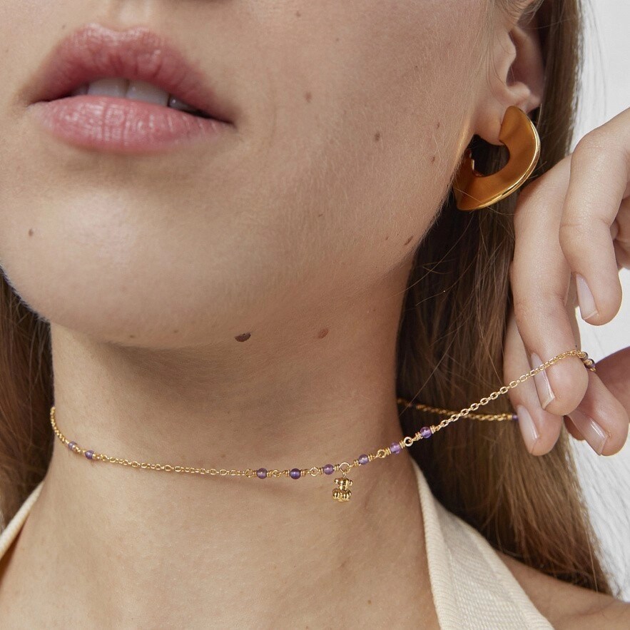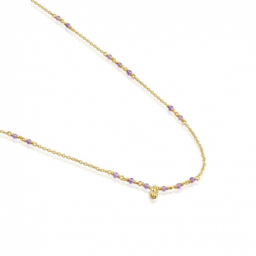 TOUS Bold Bear колье из серебра 925 пробы с покрытием Vermeil и аметиста с подвеской в виде медведя из серебра 925 пробы с покрытием Vermeil . Размер драгоценных камней: 2-2,5мм. Размер медведя: 5,35мм. Длина колье: 42-45 см. Застежка пружинное кольцо.