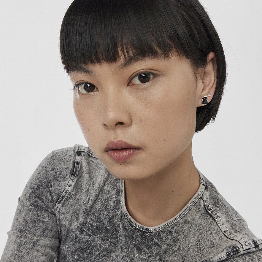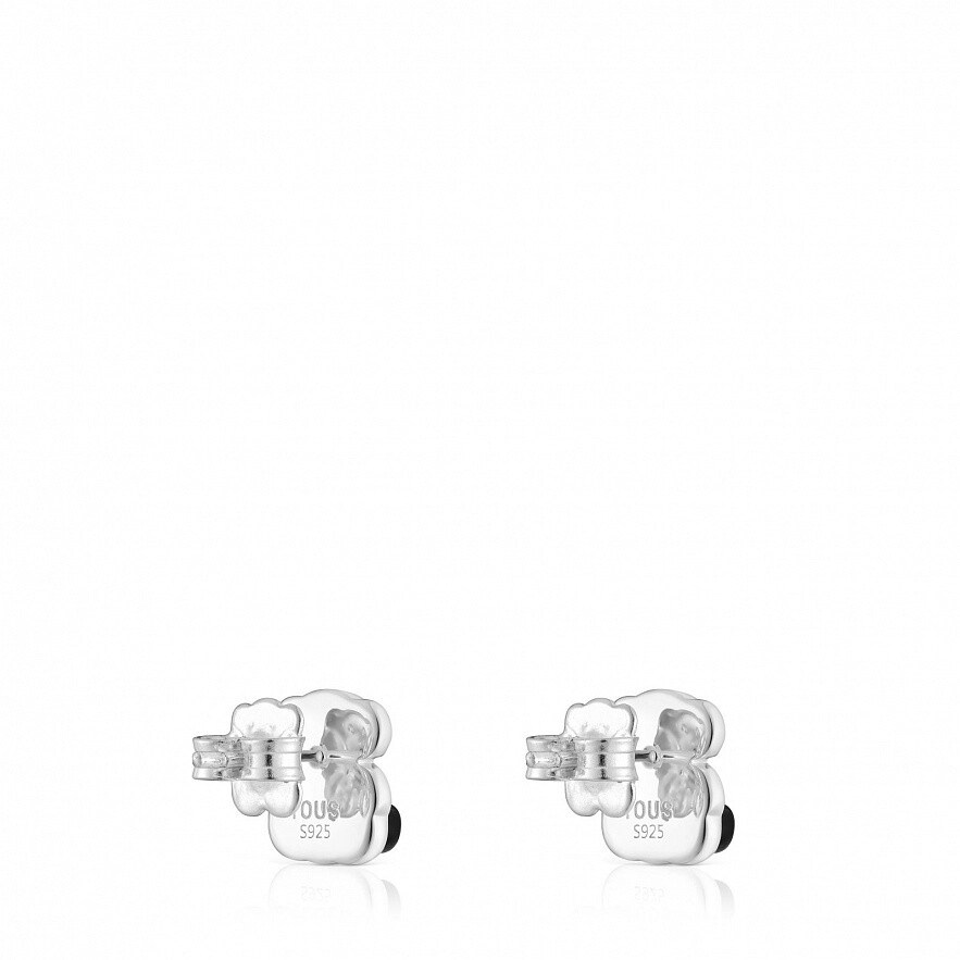 Серьги TOUS Bold Bear из серебра с ониксом в форме медведя. Размер мотива медведя: 10 мм. Застежка-пусет.
