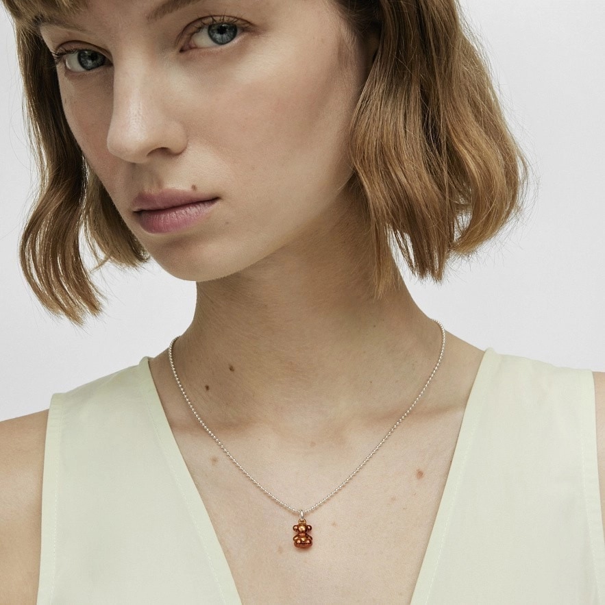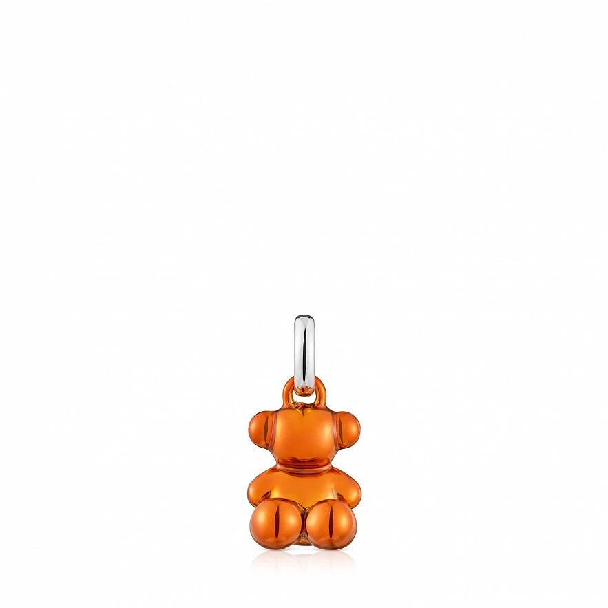 Маленький кулон TOUS Bold Bear из оранжевой стали и серебряного кольца. Размер медведя: 11 мм. Без цепочки.