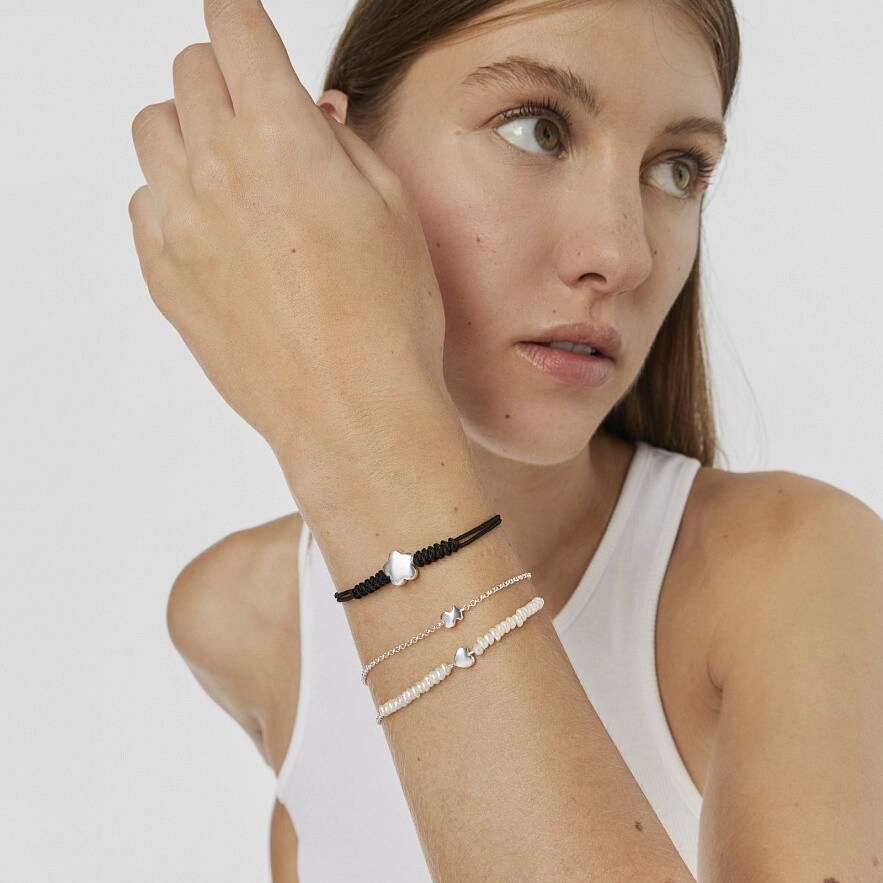 Браслет TOUS Bold Motif из черного нейлона и цветочного мотива из серебра. Размер мотива: 10,5мм. Застежка-слайдер.