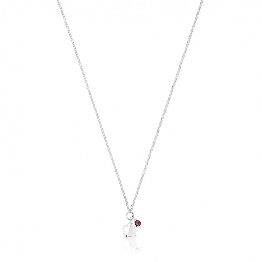 Колье TOUS Bold Motif из стерлингового серебра с цветочным мотивом и гранеными деталями из родолита. Размер драгоценного камня: 3-3,5 мм. Размер цветка: 7,5 мм. Длина колье: 42-45 см. Застежка пружинное кольцо.