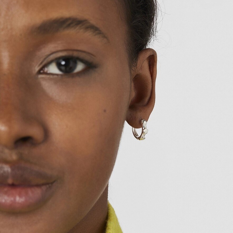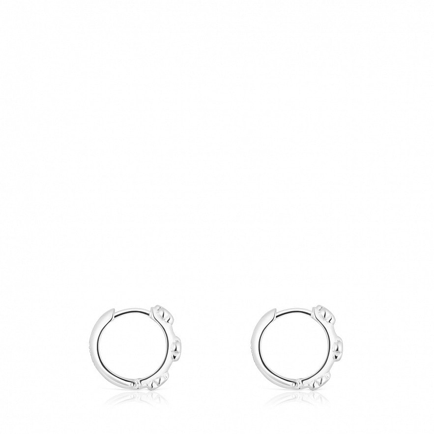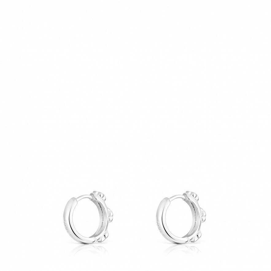 Серьги-кольца TOUS Bold Motif из стерлингового серебра с тремя цветочными мотивами по ободку. Размер рисунка: 4 мм. Диаметр кольца: 10 мм. Длина болта: 6 мм.