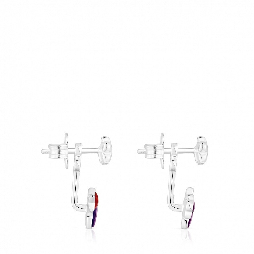 Серьги TOUS Bold Motif из стерлингового серебра с мотивами и драгоценными камнями на внутренней стороне силуэтов. Вы можете носить эти серьги как вместе, так и по отдельности. Размер серебряного цветка: 5,5 мм. Съемная часть серьги регулируется в двух положениях и состоит из трех драгоценных камней: 4-м ограненного кабошона сердолика в форме звезды, 5-миллиметрового кабошона аметиста в форме бабочки и 4-м ограненного кабошона родолита в форме звезды. форма цветка. Длина серьги: 15 мм. Застежка-пусет. Примечание: только серьга в виде цветка имеет шпильку.