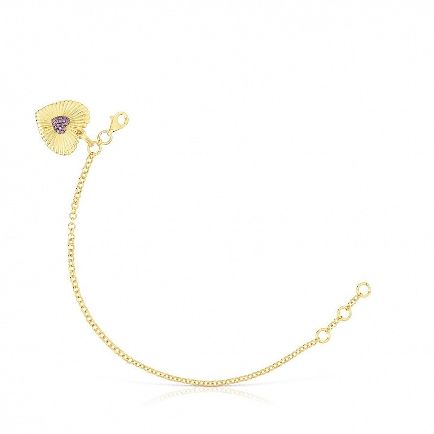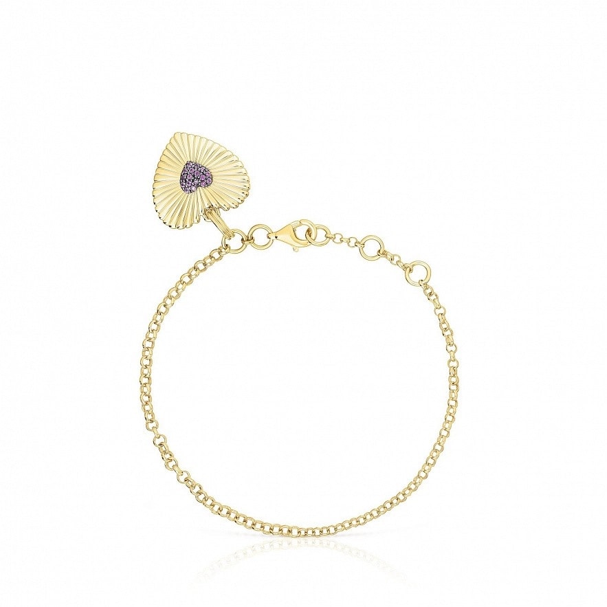 TOUS Iris Motif браслет из серебра 925 пробы с покрытием Vermeil и подвеска в форме сердца с родолитом. Размер кулона: 18мм. Размер подвески из родолита: 5,5мм. Длина браслета: 18 см. Застежка-лобстер.