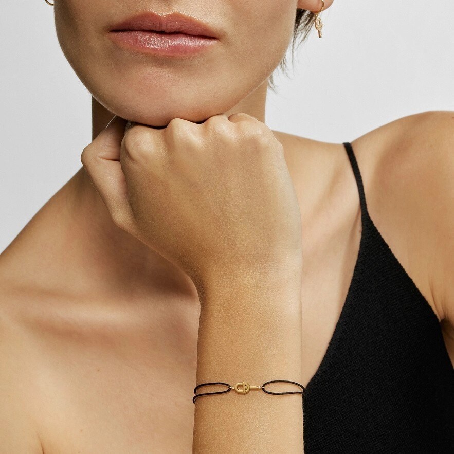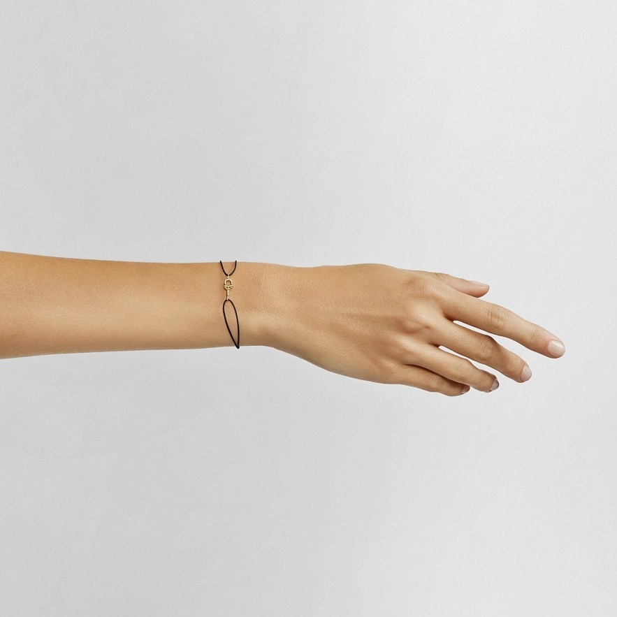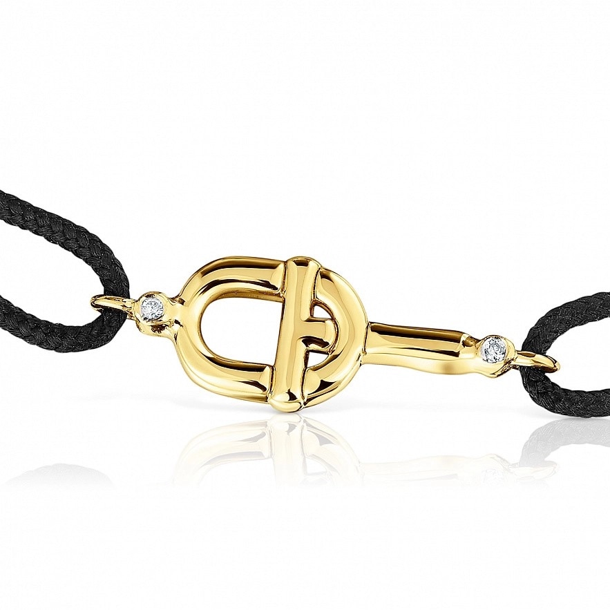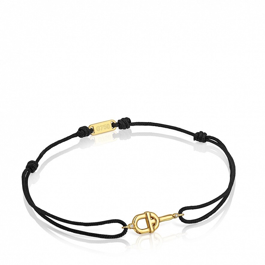 Браслет TOUS Manifesto из 18-каратного золота с черным нейлоновым шнуром и бриллиантами 0,005 карата на мотиве. Качество бриллиантов: H/SI. Размер мотива: 10 мм. Застежка-слайдер.