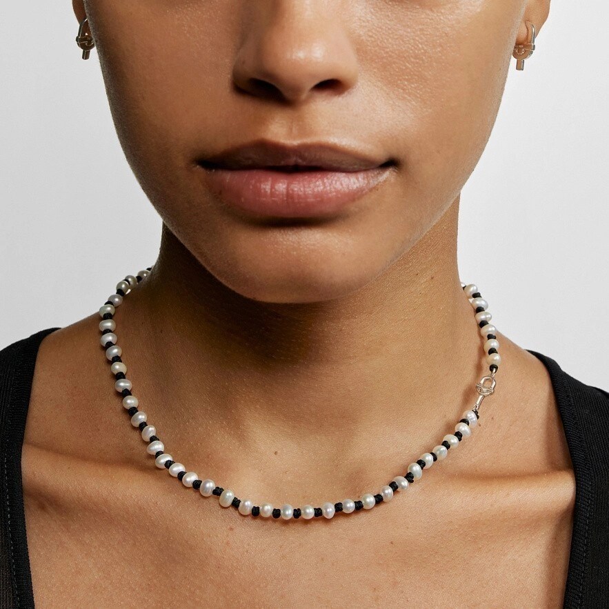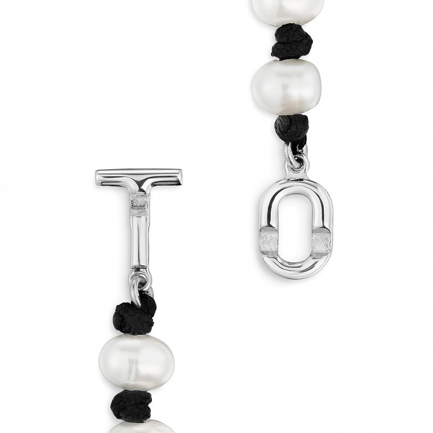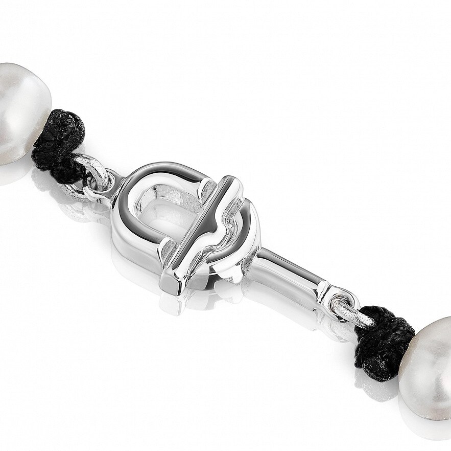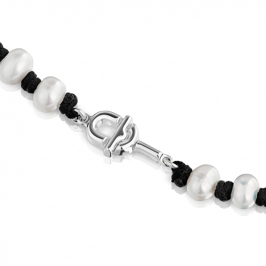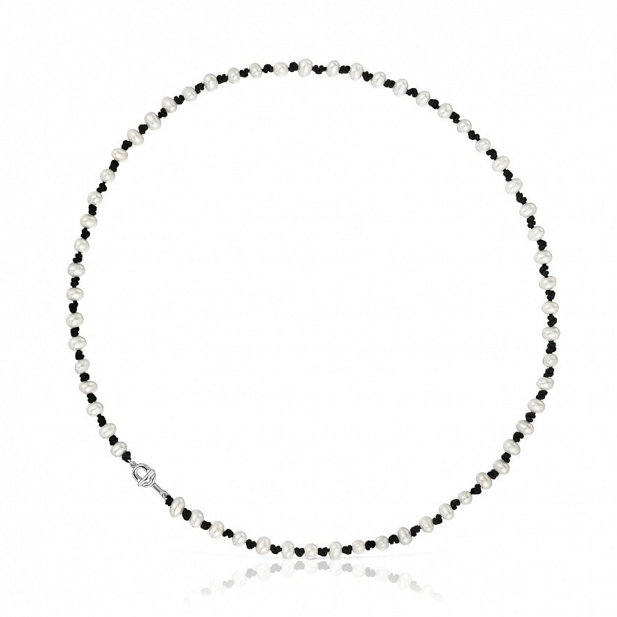 Колье TOUS Manifesto из серебра 925 пробы, с жемчугом культивированным на черном шнурке.