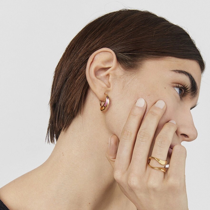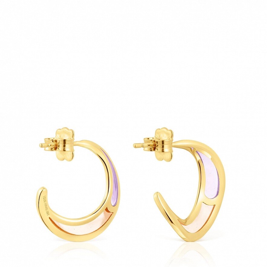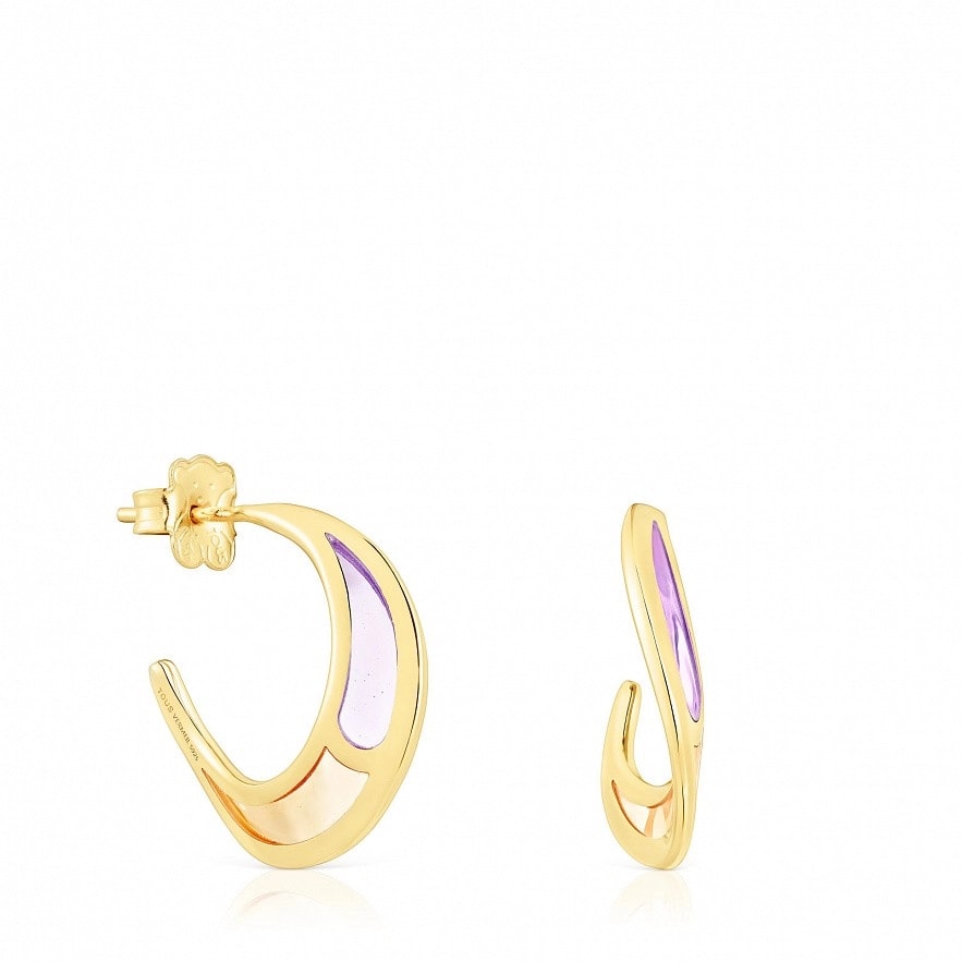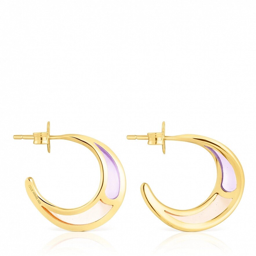 Серьги-кольца TOUS Gregal из серебра 925 пробы с покрытием Vermeil с лиловой и оранжевой эмалью. Диаметр серьги: 21,5мм. Застежка-пусет.